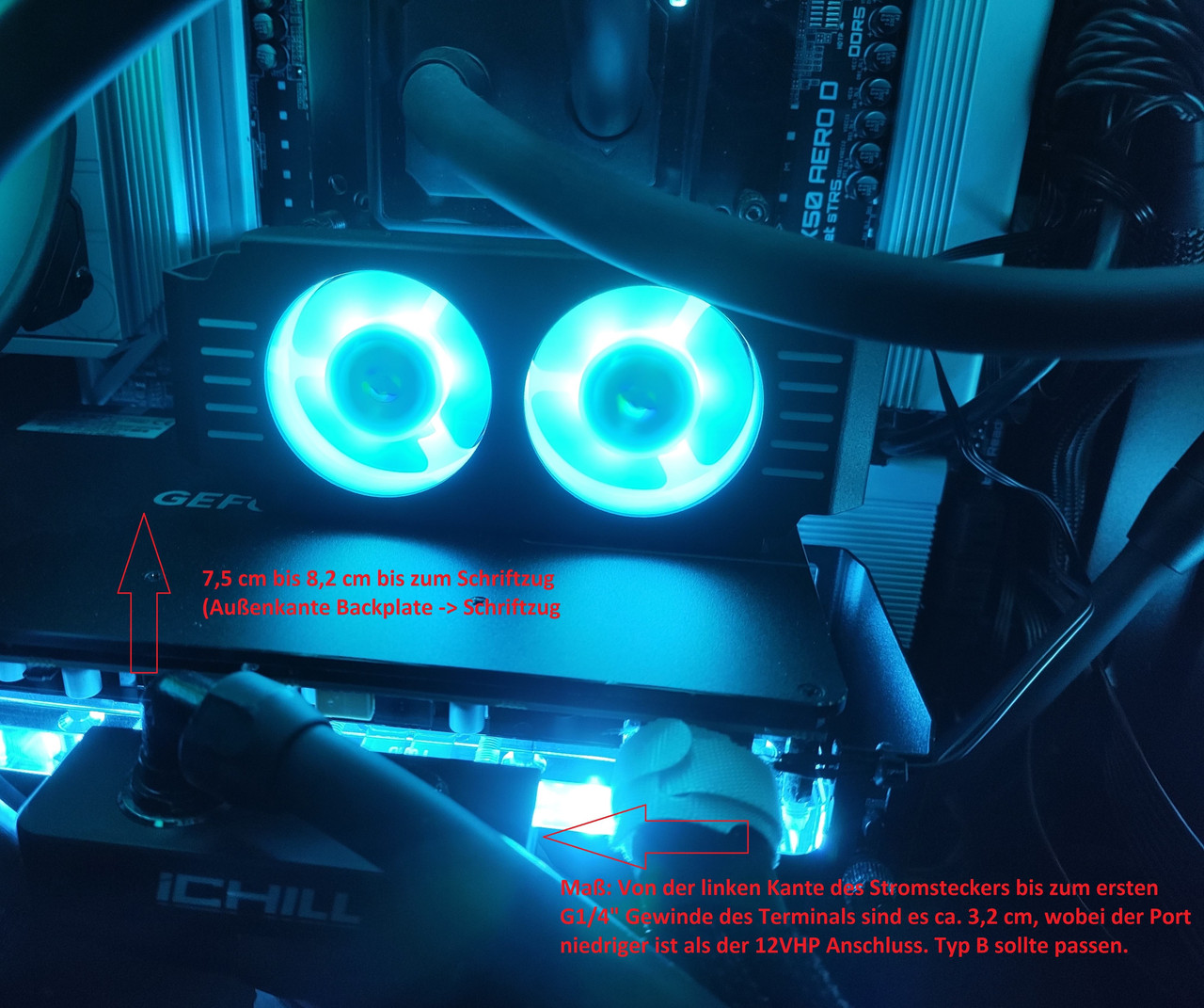 ): Ich habe jetzt bei meiner mehrfach nachgemessen... weder Variante A noch B wird mit diesen Alphacool "Core" Wasserblöcken für das Referenzdesign funktionieren wenn man den Outlet vom GPU-Block unbedingt oben oben haben möchte/muss. Das beträfe dann leider alle Inno3D 5090 Referenzdesigns mit einem nachgerüsteten "Core" Block UND die ab Werk damit vormontierte 5090 iChill Frostbite eben auch. Der Outlet ist oben rechts und damit recht nah am 12V-2x6 Anschluss. Schließt man dort am terminal ein beliebiges Fitting zur Schlauchverschraubung an, würde bei Variante B der Ampinel Kühlkörper damit kollidieren, also bekommt man den nicht eingesteckt. Einzige Lösung die ich sehe (ohne den Ampinelkühler recht handfest zu modifizieren): Sollte man bereit sein Out nach nach unten zu legen dann passt Variante B. Variante A passt leider in keinem Fall. Eigentlich wäre es optisch schön sauber mit einer Variante A überkopf für viele Karten mit Wasserblock, aber zumindest bei meiner ist das Terminal vom Wasserblock um ein paar mm im Weg.