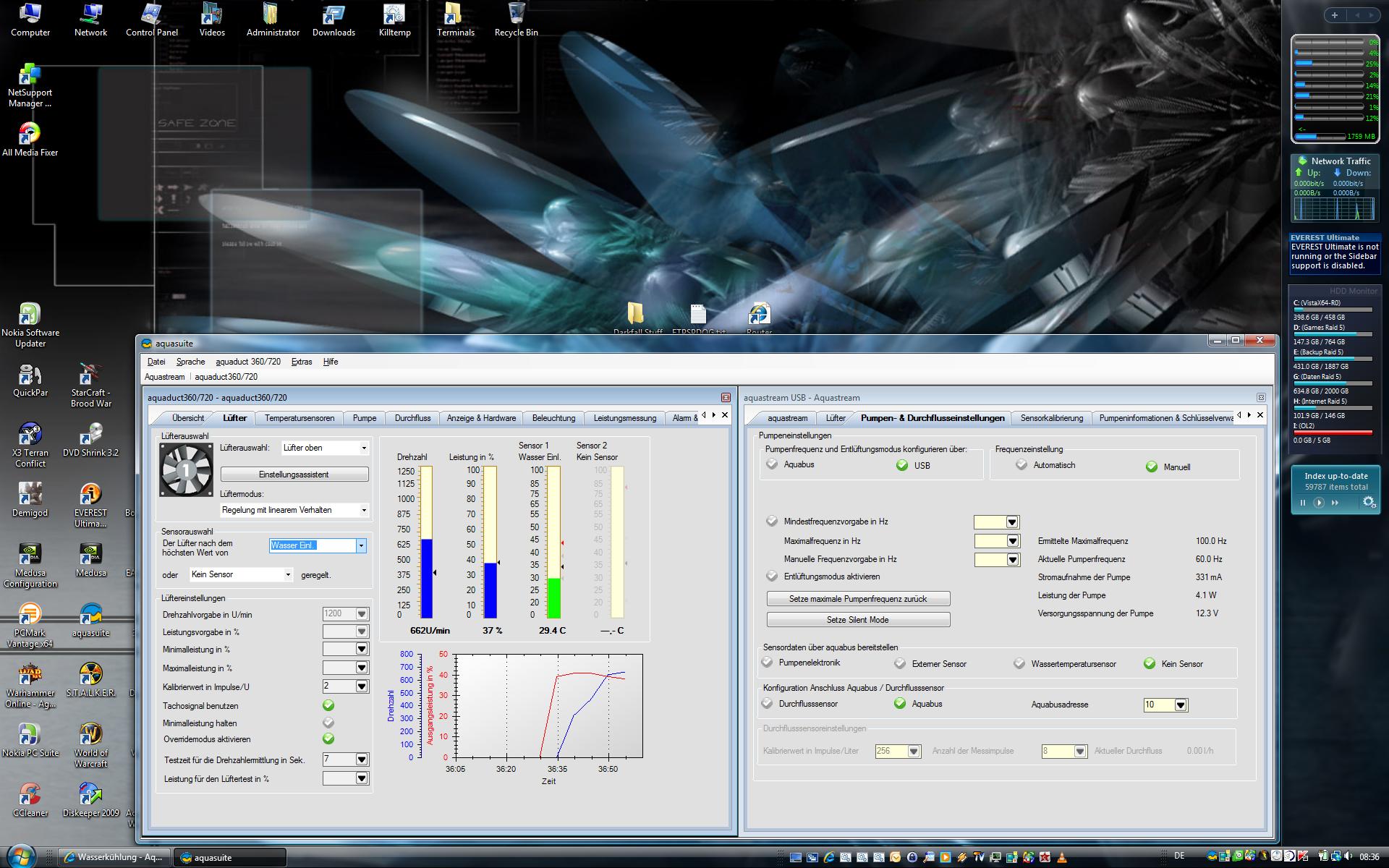 Habs mal mit Windows 7 x64 versucht. Aquasuite installiert und alle Werte sind korrekt dargestellt. Habe im Windows 7 aber keine der Updates gemacht. Die Hardware muss also in Ordnung sein.