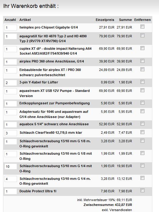 Anbei mal ein Screenshot von meinem Warenkorb, fehlt noch etwas? Welchen Ausgleichbehälter ich letzten Endes nehme weis ich noch nicht.