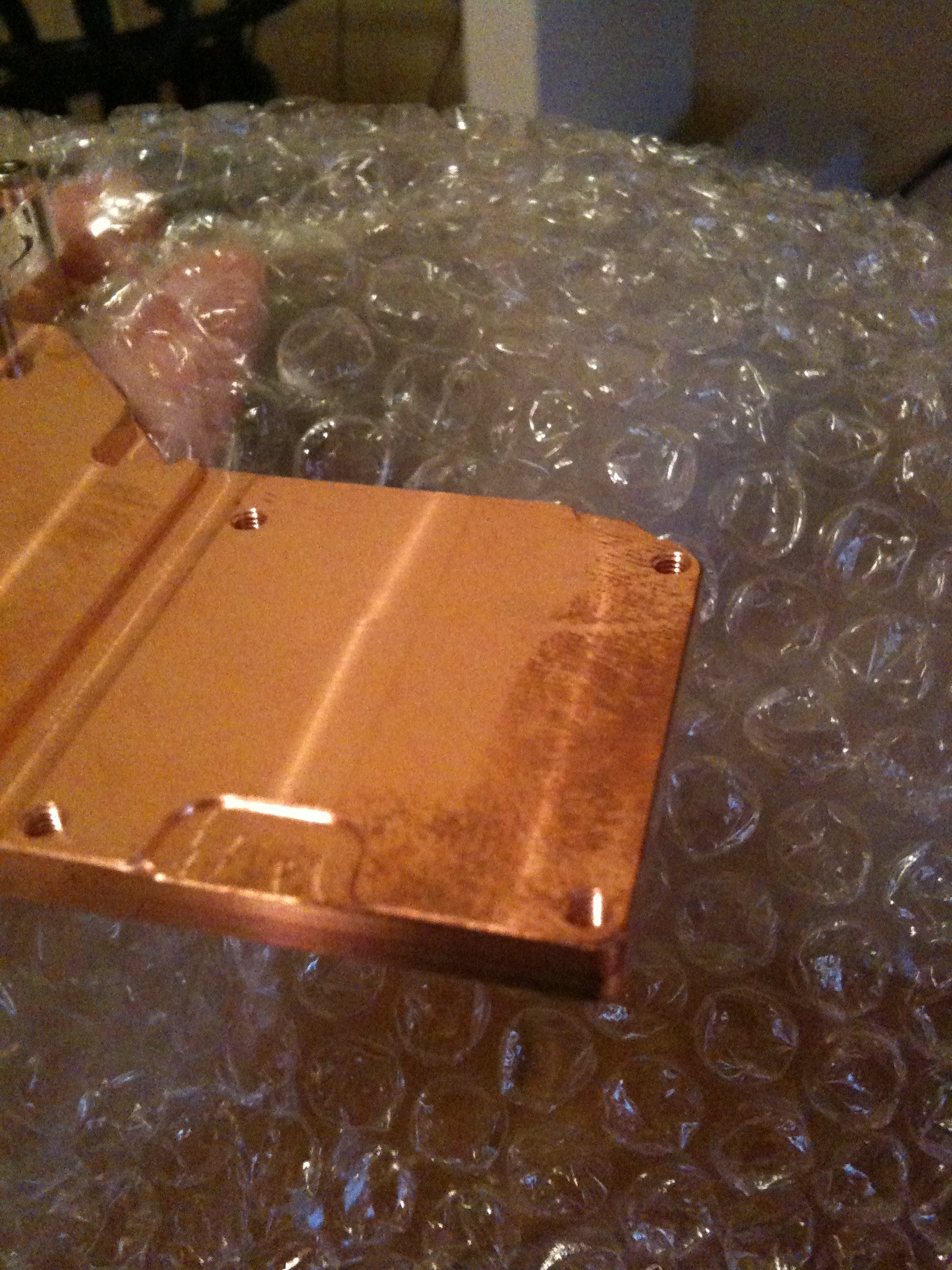 Die Kühler werden soweit ich weiss Plangefräst, bei den Cuplex kann man mit einem Stirnwalzenfräser oder Messerkopf drüber, das sieht dann aus wie poliert, auch wenn die Frässpuren noch sichtbar sind. Die komplexeren Geometrien bei den AquagraFX müssen mit Fingerfräsern mit kleinem Durchmesser gefräst werden, dabei entstehen gut sichtbare Spuren, die jedoch meistens nur einige 0.01mm tief sind und sich kaum bis gar nicht auf die Wärmeleitfähigkeit auswirken. Da sowieso an allen wichtigen Stellen Wärmeleitpaste oder Pads zum Einsatz kommen sind die Frässpuren so oder so vernachlässigbar. Da Kupfer meistens nur sehr geringe innere Spannungen hat verformt es sich auch kaum beim Fräsen und die allfällige Verkrümmung wird durch das Anziehen der Schrauben zu genüge ausgeglichen.