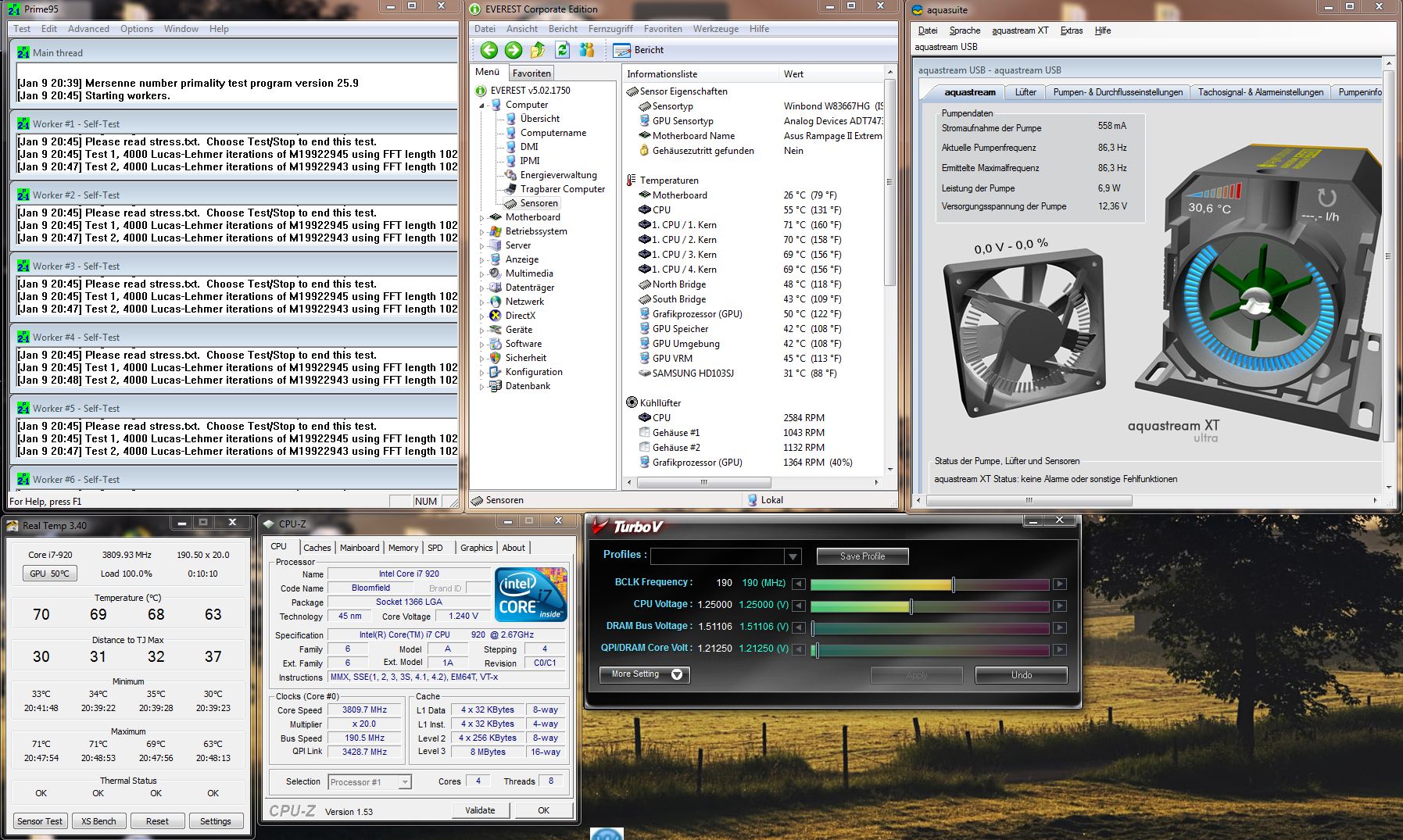 Das gekühlte Sys war ein Phenom II 940 @ 3,6GHz, 1,4V + GTX 260 OC.