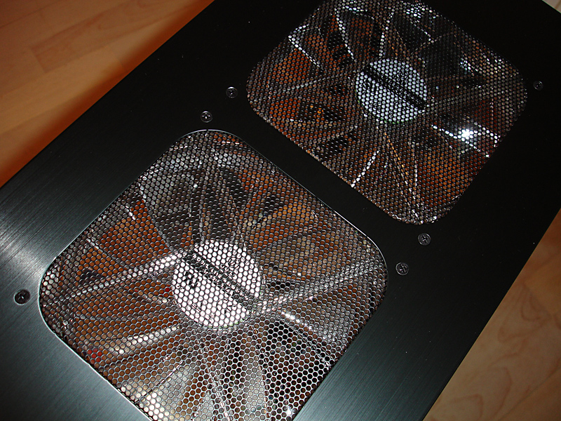 Schade ist natürlich, dass der Front-Einbau warme Luft zur Folge hat, die ins Gehäuseinnere geblasen wird. Ein zusätzliches Loch oben reinzusägen kommt für mich eigentlich nicht noch mal in Frage. Dafür bietet der Tower mehr als genug Platz, um Komponenten anders zu verteilen.