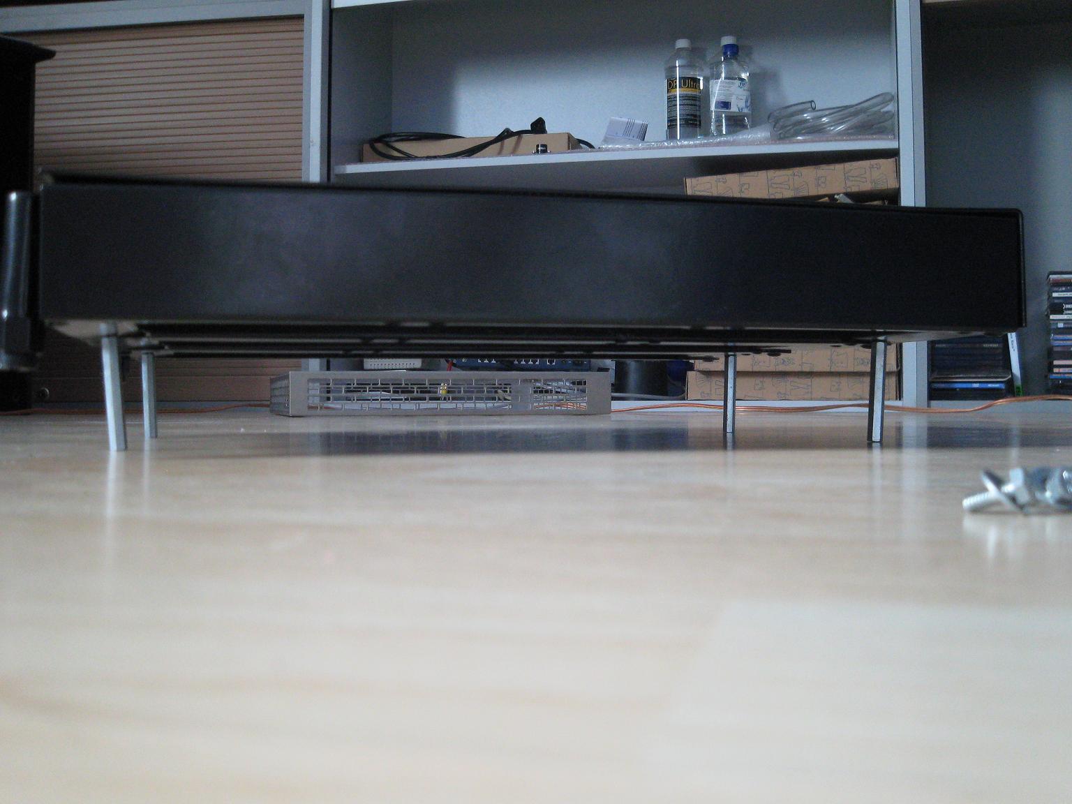 Also ich habe meinen evo1080 so stehen das die Anschlüsse unten sind. Und bestückt ist er mit 9 Scythe S-Flex SFF21D, die drehen mit 800 U/min und sind laut Scythe 8,7 db laut. Betreiben tu ich sie mit 12V. Und ich höre sie nicht wirklich.