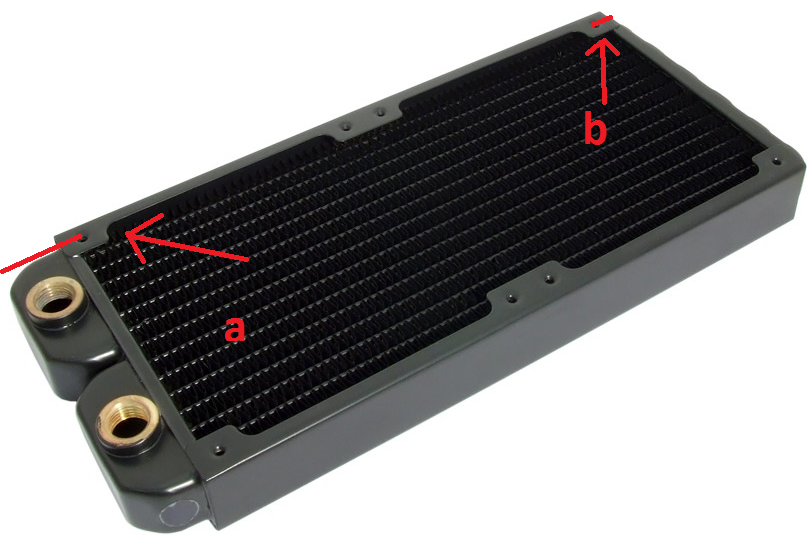 wenn beide 120mm lüfter auf den evo240 gebaut sind: schließen die lüfter ringsrum bündig mit dem evo240 ab, oder steht der evo240 (insbesondere bei strecke b) etwas über?