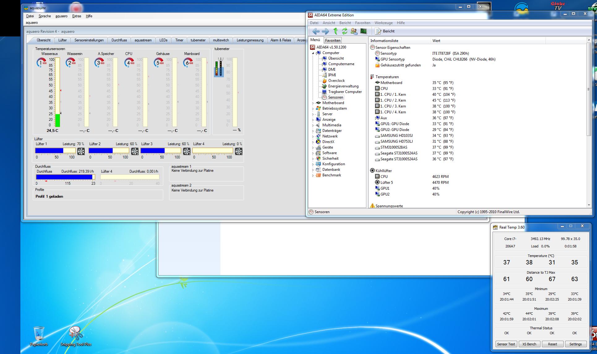 die Logik mit dem Beispiel versteh ich jetzt nicht so wirklich. Wir sprechen aber schon von Schläuchen und nicht von Kühlern, der Schlauch ist zum Transport da, nicht zum kühlen, die Wärmeabgabe geht über den jeweiligen Kühler und der hat eben nur sein Volumen, egal was für ein Schlauchdurchmesser angeschlossen wird. Wenn ich also mehr Wasservolumen im System habe, wird es kühler? Dann schließ ich einen 10L AGB an und hoffe auf winterliche Daten. Schau Dir mal meine Daten an, ich habe eine Wassertemperatur von knapp 25°C meine Kerne liegen bei ca. 36-40°C bei einem Durchfluss von 225l/h. Morgen kommen meine anderen Geräte, dann kann ich das besser zeigen.