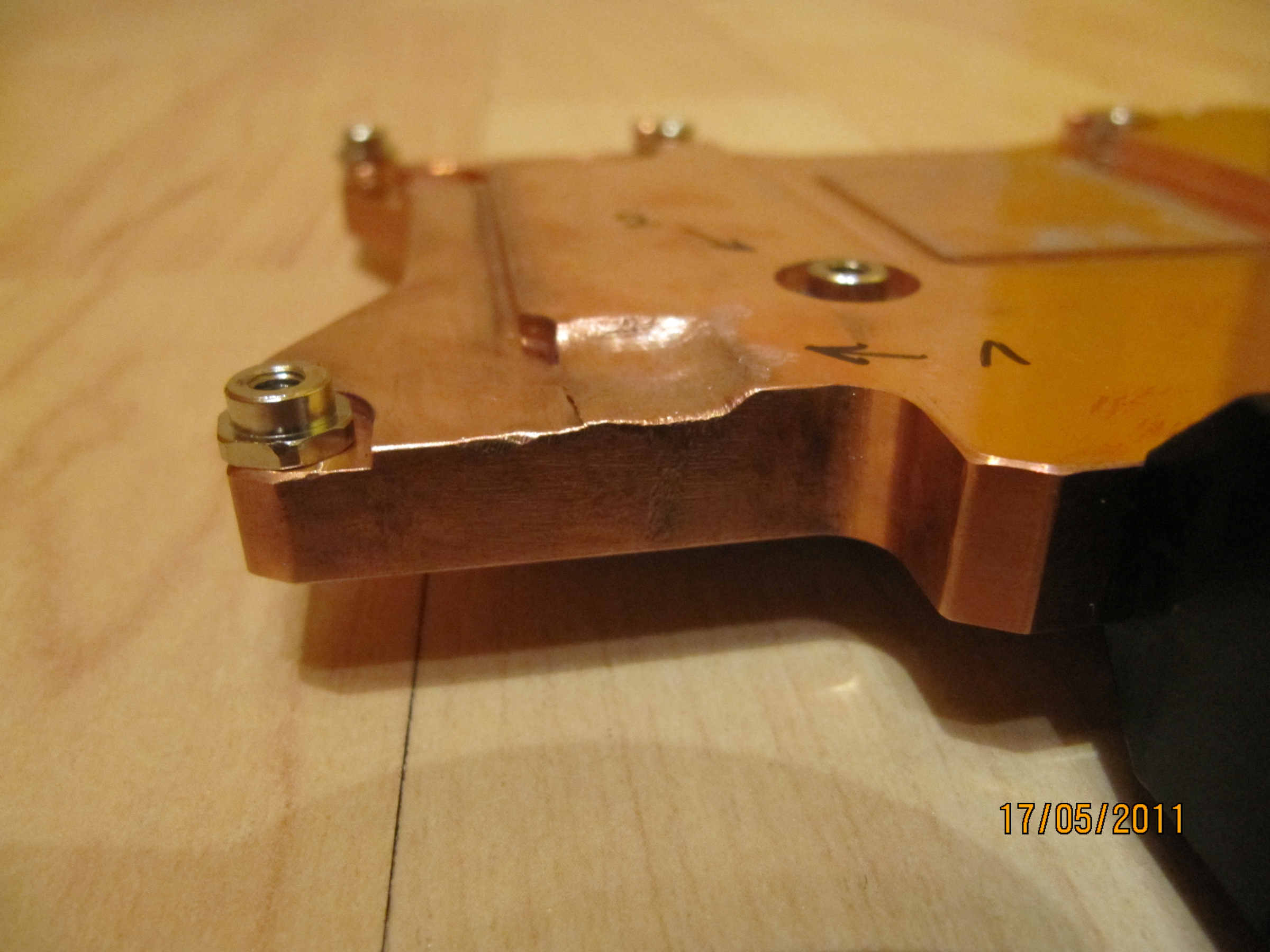 Distanzschraube neben der GPU Aussparung viel weiter aus dem Kühler rakt als die anderen.
