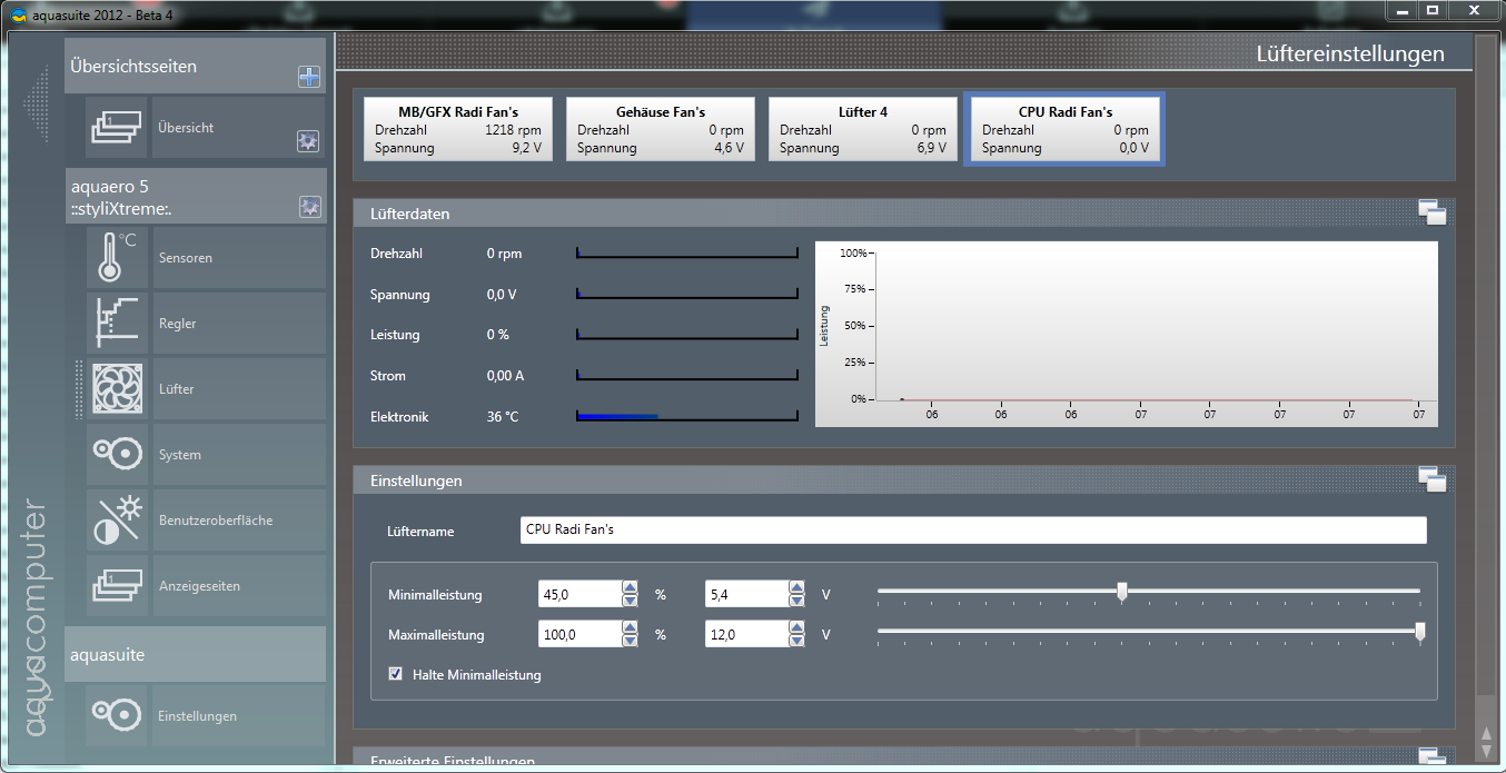 Der "CPU Radi Fan's" ist der 5te Lüfter, Verkabelung passt, die FW auf dem PA2 Ultra ist die 1003. ich schau mal wann ich die kiste wieder zerlegen kann (Produktivsystem), und geb dann bescheid. kann ich die werkseinstellungen auch über die AS2012 einspielen, oder muss ich die 4er installieren?Naja,.. das PA wird einfach nicht gefunden. (es fehlt ja der 5. Lüfter)
