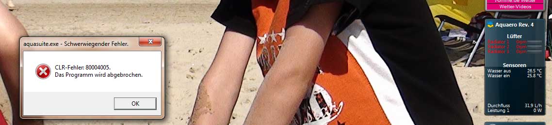 ich wollte mal, nach längerer Zeit wieder, die Aquasuite starten. Aber nun erhalte ich beim Start eine Fehlermeldung, siehe Anhang. De-und Neuinstallation haben leider nichts gebracht. Das Gadget, siehe Bild rechts, scheint zu funktionieren und auch im Gerätemanager ist alles okay. Was kann ich hier tun?