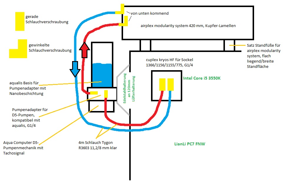 Achso das wird dann irgendwo außen im Kreislauf eingebunden und mit 2 Anschlüssen verbunden. Da ja bis auf CPU Kühler ja alles extern ist wirklich erforderlich? Kann den Radi ja übern Eimer halten und abschrauben oder stell ich mir das zu einfach vor?