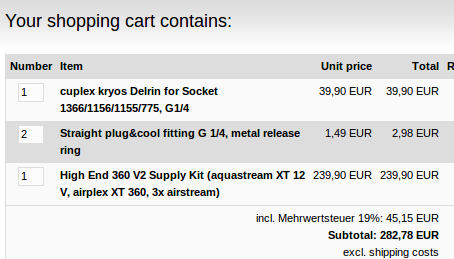 Da habe ich dann aber sonst noch garnicht,was Pumpe,Radiator,Schläuche,winkelstücker etc angeht und bin eigentlich schon an Kapital Obergrenze angekommen...