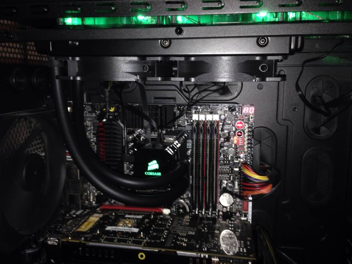 Und wenn nicht, dann zumindest die 2xGPU´s. Fragt sich dann nur wo ich den H100i (240er) für die CPU verbauen soll? Wenn der 360er unter den 3 Lüftern Oben ist, ist nach unten kein Platz mehr. Und sonst habe ich nur noch 2x140mm Lüfter im Case inkludiert. (jeweils einzeln am Boden und nach Hinten raus)