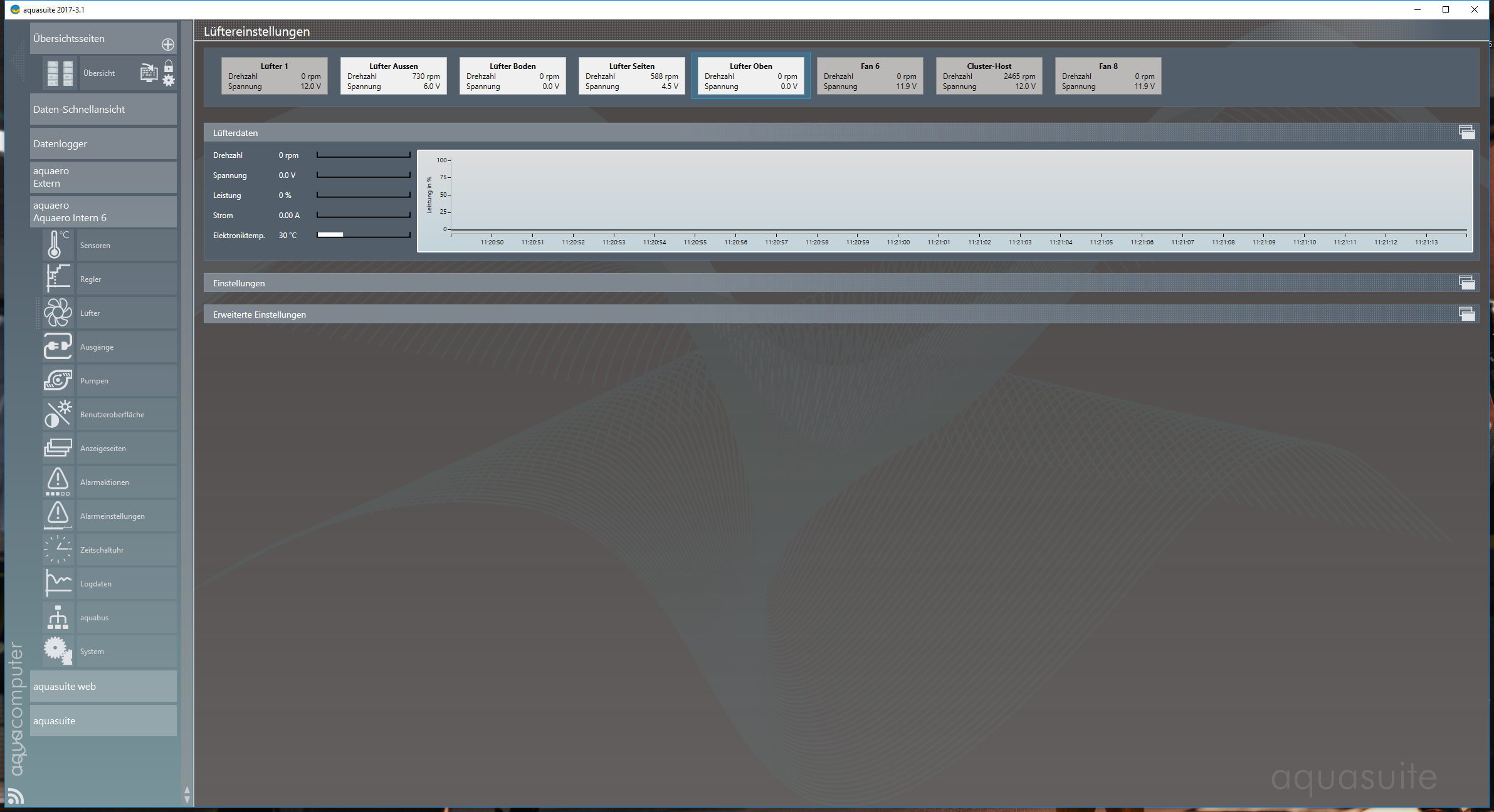 Die Lüfter hängen an einem Aquaero 5 (als Slave und der Slave hängt an einem 6er).