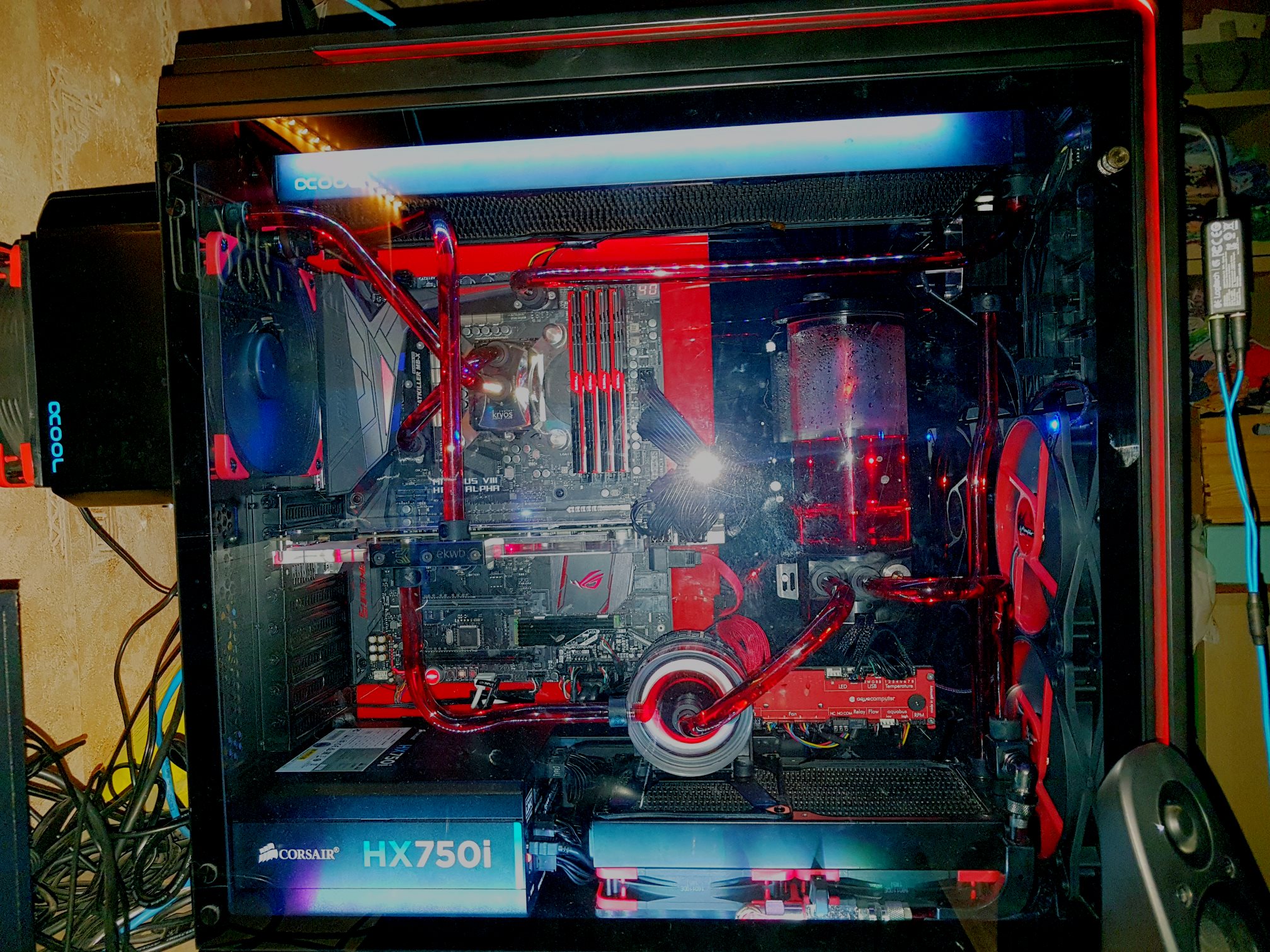 Ja in der Mitte das Runde ist die D5 Pumpe, Radiatoren habe ich einen 420er im Top, einen 240er im Boden, und einen 140er hinten, wobei der 140er quatsch war. Habe schon einiges an Lehrgeld bezahlt :-)