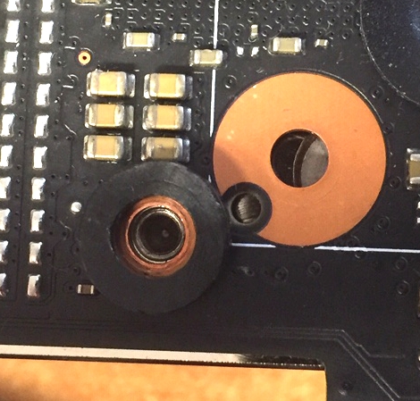 Ebenso keine von dem einen Backplate-Abstandshalter. Der Kühler / die Platte sitzt ja nicht bei jedem 100% genau mittig in den Bohrungen. Ein bisschen Spiel hat man zwangsweise durch die zu großen Löcher des PCBs. Das hätte bei mir an dem SMD in deinem Bild (I024580D2.jpg) links oben leicht aufgelegen. Leider kann ich da so kein Pic von machen. Müsste die Karte aus dem Kreislauf nehmen. Soll jetzt nicht heißen, dass da gleich was kaputt geht. Mir war das nur zu unsicher und ich habe die lieber mal gerade angeschnitten.