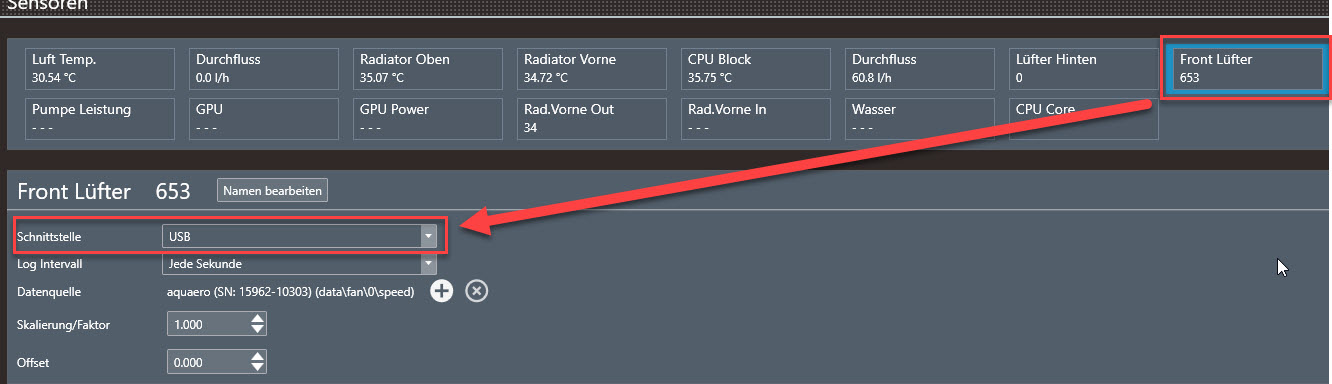 Screenshot USB Messwert: