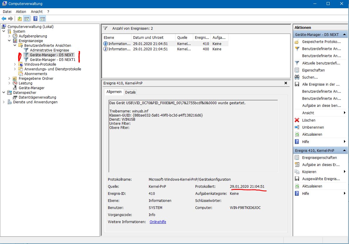 "Gerätemanager D5 Next 1" hat, und ob Eure D5 Next die gleichen Win-Services & die winusb.inf als generischen Treiber nutzen?