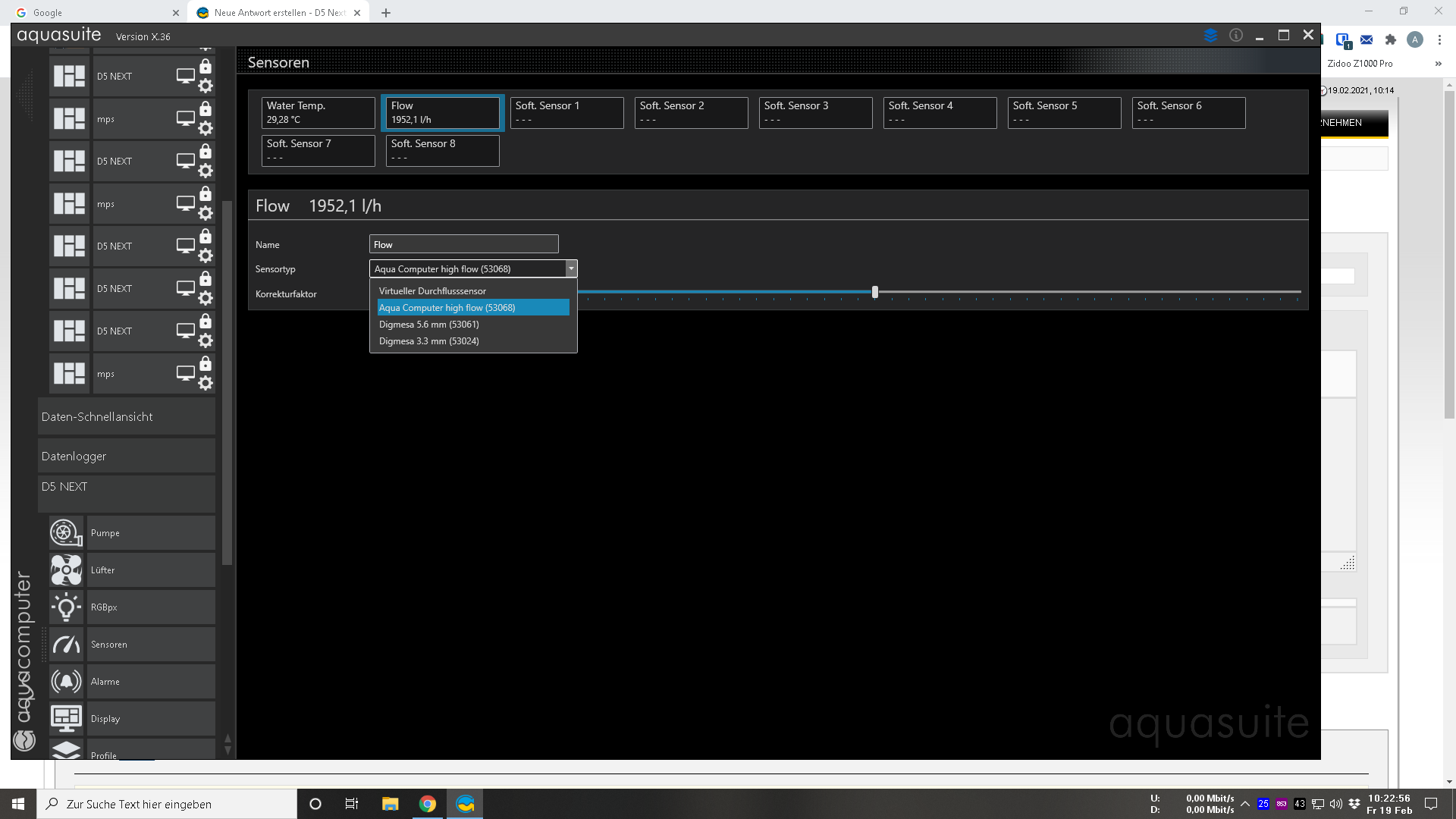 Gestern habe die D5 gegen die D5 Next ausgetauscht, die aktuellste Aquasuite (X.36) installiert, als flow-Sensor den High flow ( 53068 ) eingestellt.