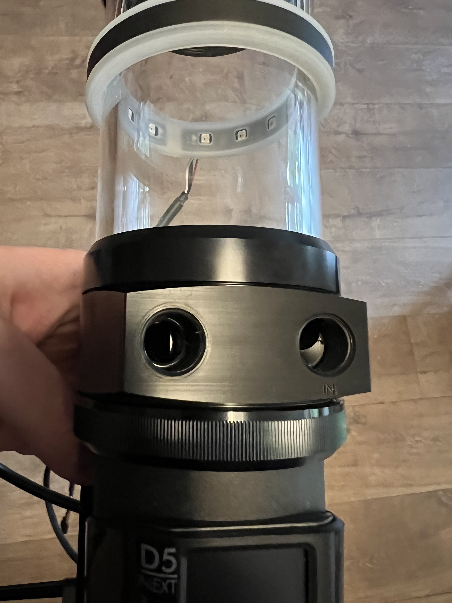 ich bereite momentan meine Wasserkühlung vor. Bei der Ultitube ist mir aufgefallen, dass der "In"-Port so aussieht, als wäre das Gewinde nicht vollständig ausgeschnitten worden (siehe Bild). Da es aber "halb" durchgängig aussieht, frage ich mich doch, ob das evtl. für den Eingangsport genau so gewollt/designt ist?
