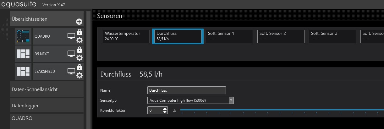 Habe dann den Entlüftungsmodus gestartet. Dabei mal in den Sensoren vom Leakshield geschaut und beim Durchfluss fehlt wieder die Datenquelle (es sieht wie bei dem "Durchfluss 2" Bild im letzten Posting aus). Könnte es hier helfen den Durchflusssensor nicht an der D5 anzuschließen, sondern an den Quadro? Oder ist dies auf Grund des bekannten Fehlers irrelevant?