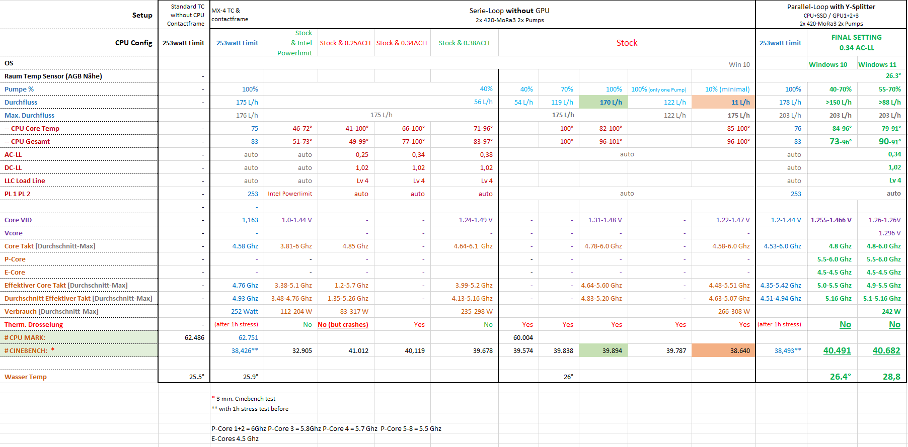 Stabil wurde er leider erst ab 0,34 AC-LL aber dafür die E-Cores auf 47 und die ersten beiden P-Cores auf 60 und die anderen absteigend 58 bis 56
