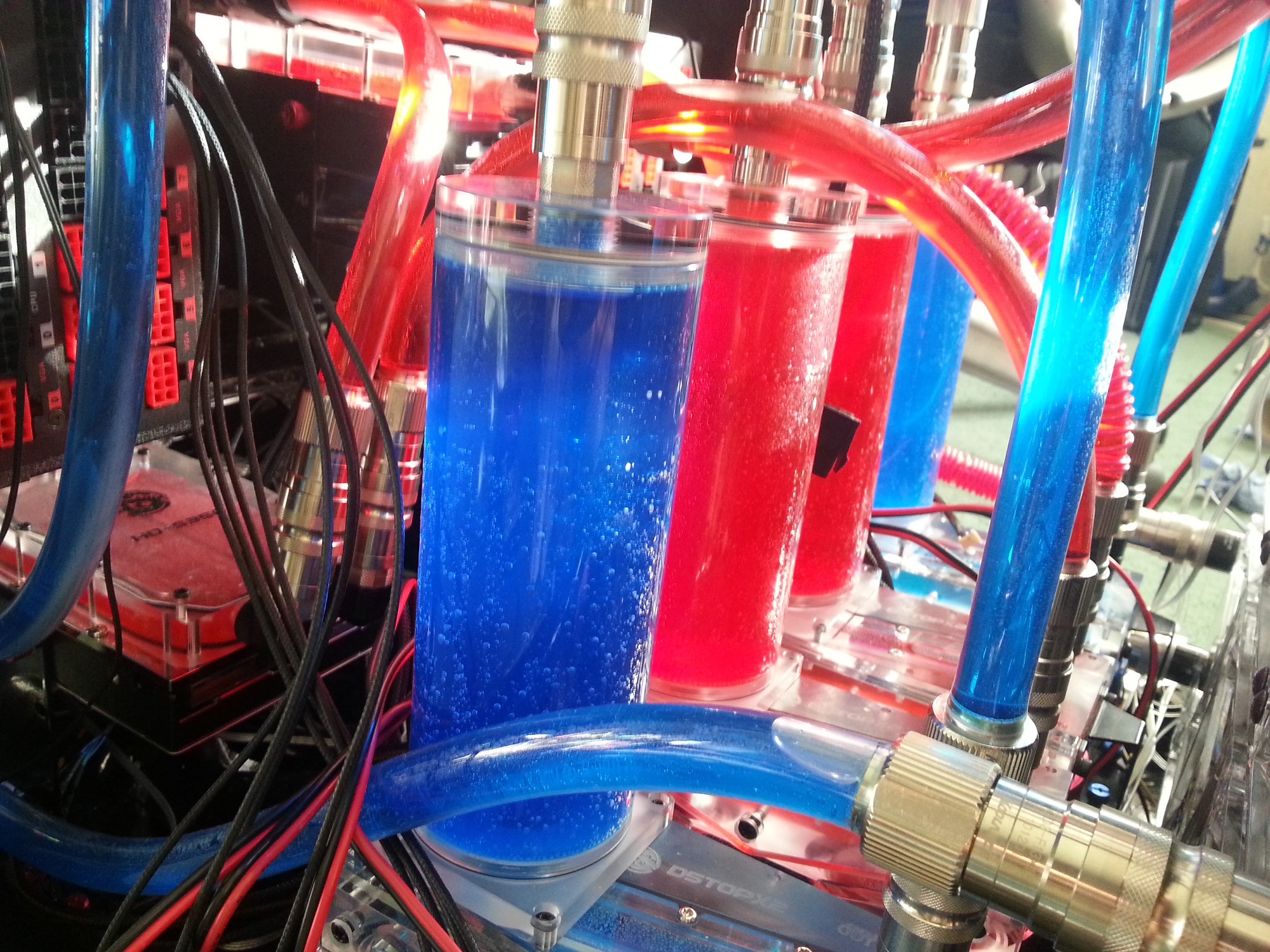 Not possible to photograph my pump setup in my computer case without A LOT of fiddling about to show you what I meant in my post above. Stating it a little more precisely, the Bitspower pump kit consists of several parts. The cylindrical housing which holds the pump onto the pump top looks like it is one single part in the picture you linked to but it is actually two. One part is the cylinder that screws onto the pump top to hold the pump in place. The other is a circular end cap (with the Bitspower logo) that simply fits inside the cylinder to hide the pump. You can use the pump kit without this end cap so the Aquacomputer mps D5 electrical connectors are free. (These pumps wouldn't fit with the end cap in place anyway.)