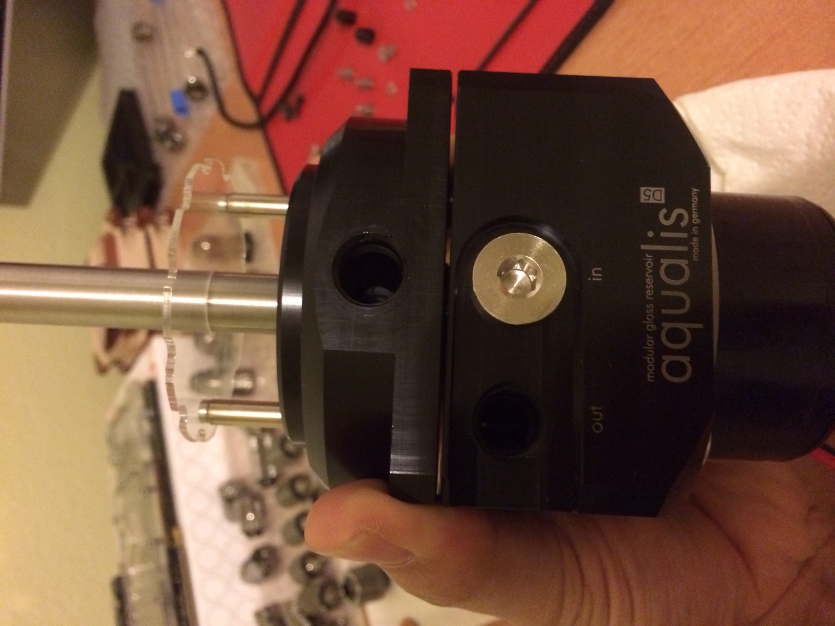 This is a photo of the pump top adapter that holds the D5 pump. You would just need to plug the hole I have plugged here.