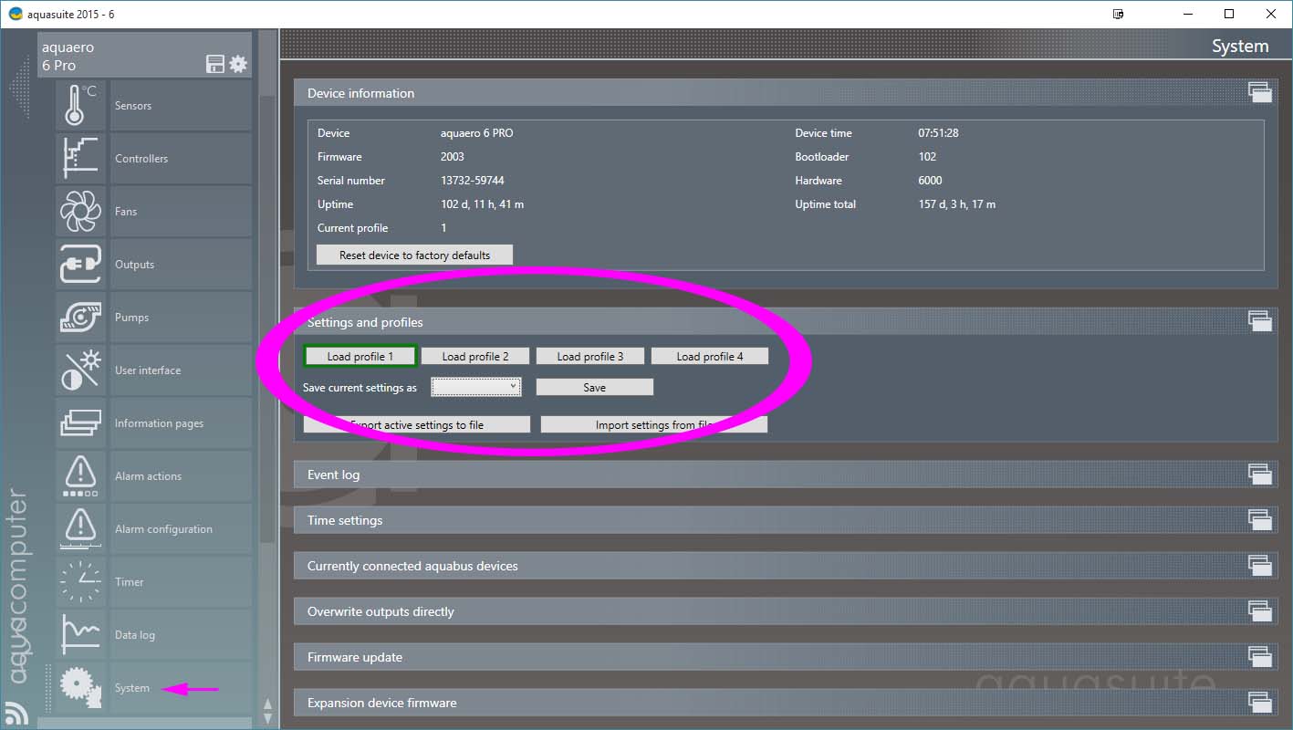 I'm interested in aquaero 5 LT. Is it possible to setup several profiles with speeds for different fans?