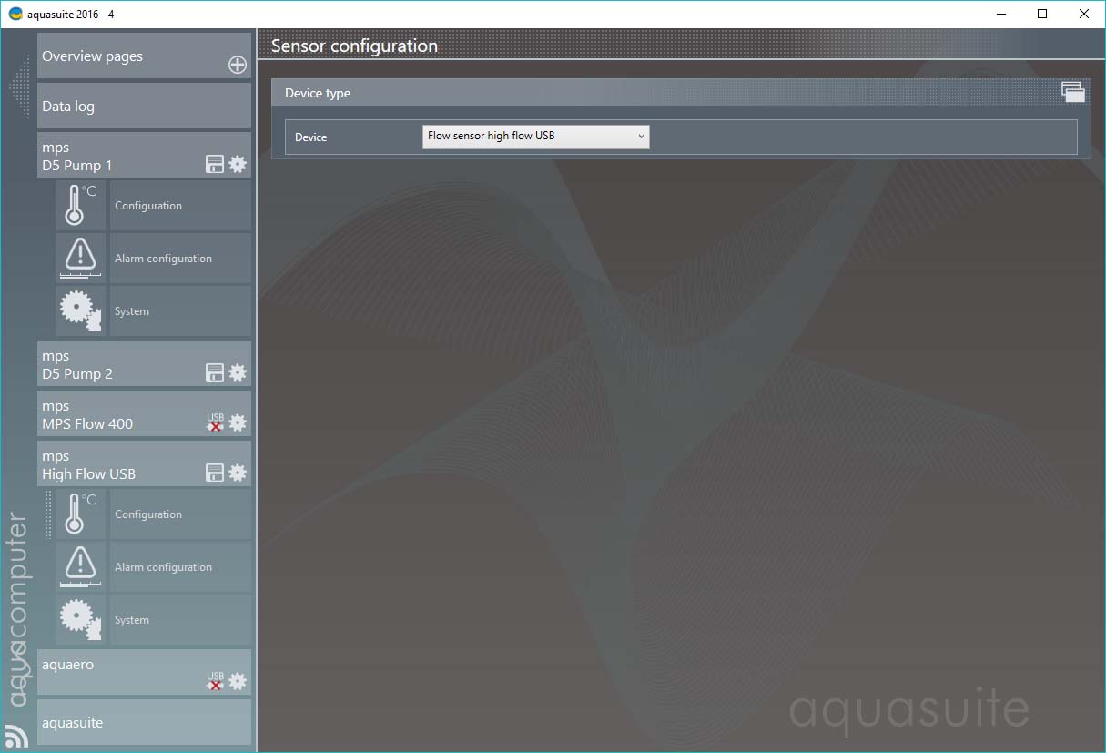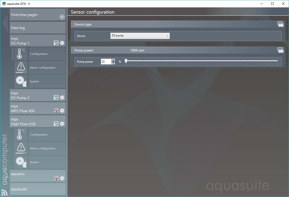 The two pumps show power & RPM under their respective USB>configure tabs, and I remember the MPS flow 400 also shows the flow rate under its USB>Configure tab.