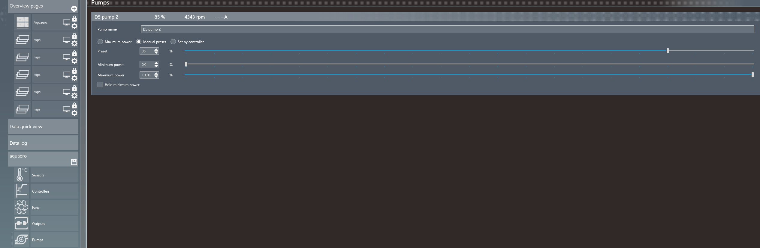 On the preset controller I set at 80% speed. When I select output there is only 1 D5 pump assign when before there were 2.