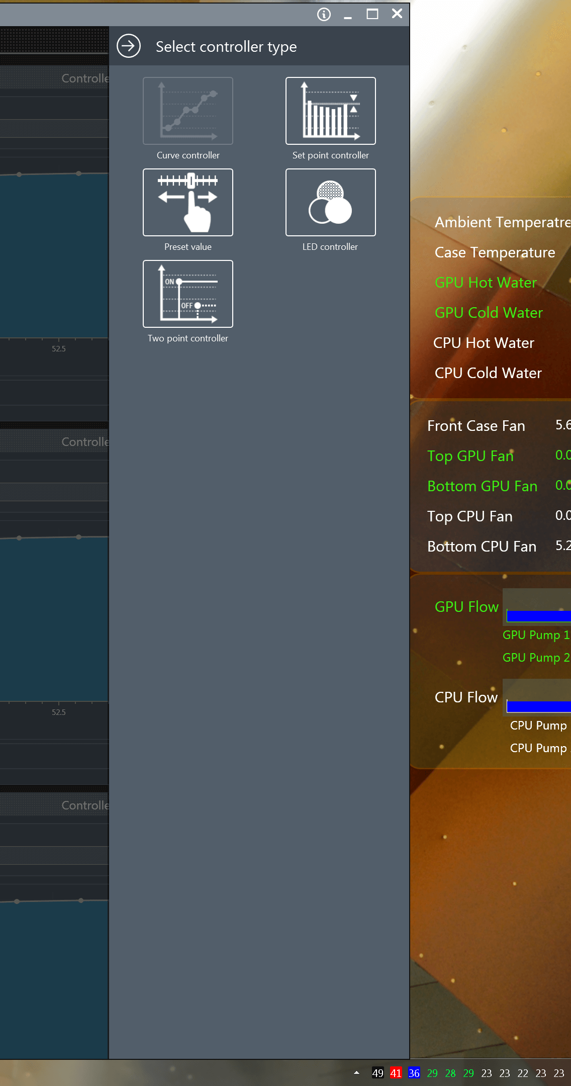 Four analogue temperature sensors and a flow sensor can be connected to QUADRO. Eight additional sensor values can be transferred from the computer to the QUADRO in the form of software sensors. For example, it is possible to control outputs directly according to the CPU or GPU temperature or to visualize the load by using LED strips.