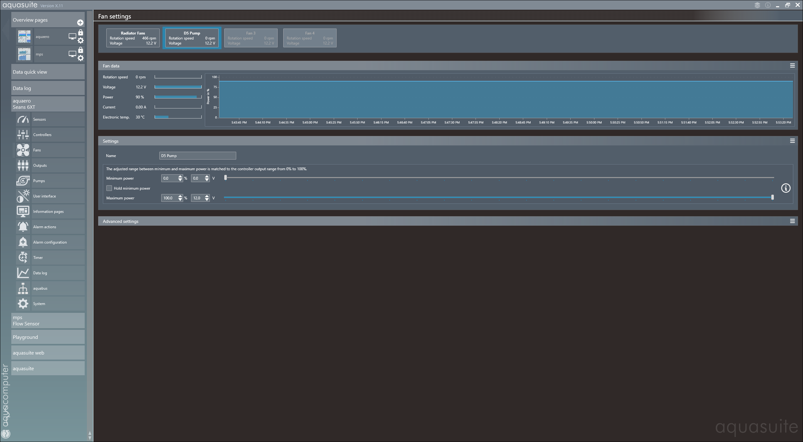 For the Pump issue, PWM pumps like the D5 that I run need to be connected to 1 of the available fan channels and then setup in the software just like a fan, Once you do this you can make a Curve controller just like you would if it were a fan.