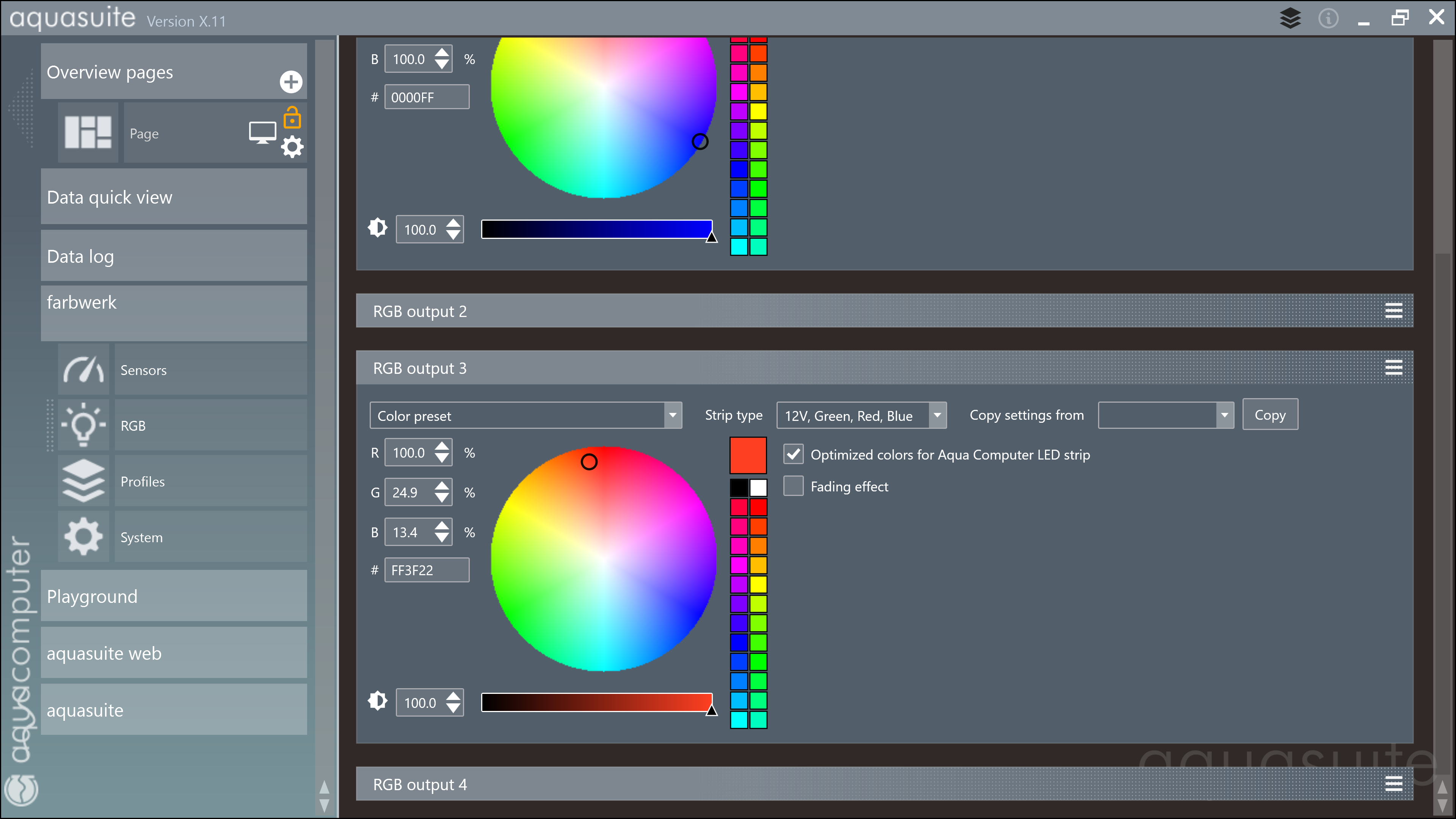 I have one farbwerk with about 20 feet of aquacomp lights---I have another controller on the way