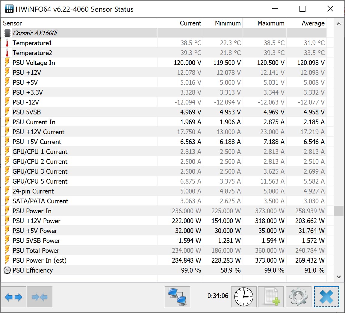 The Corsair HX1000i PSU may be visible in LINK or iQUE, but HWiNFO does not pick it up, so you may not be able to add that to your widgets.