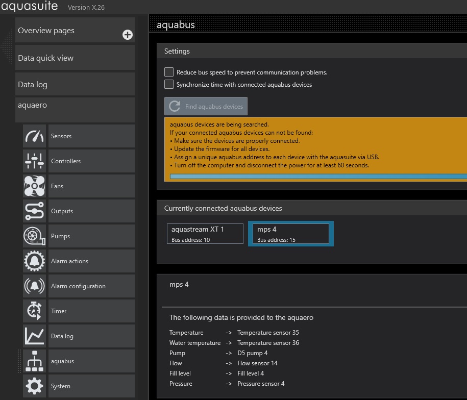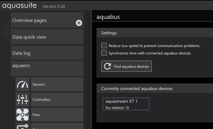 If I click on "Find aquabus devices", it is found again in no time.