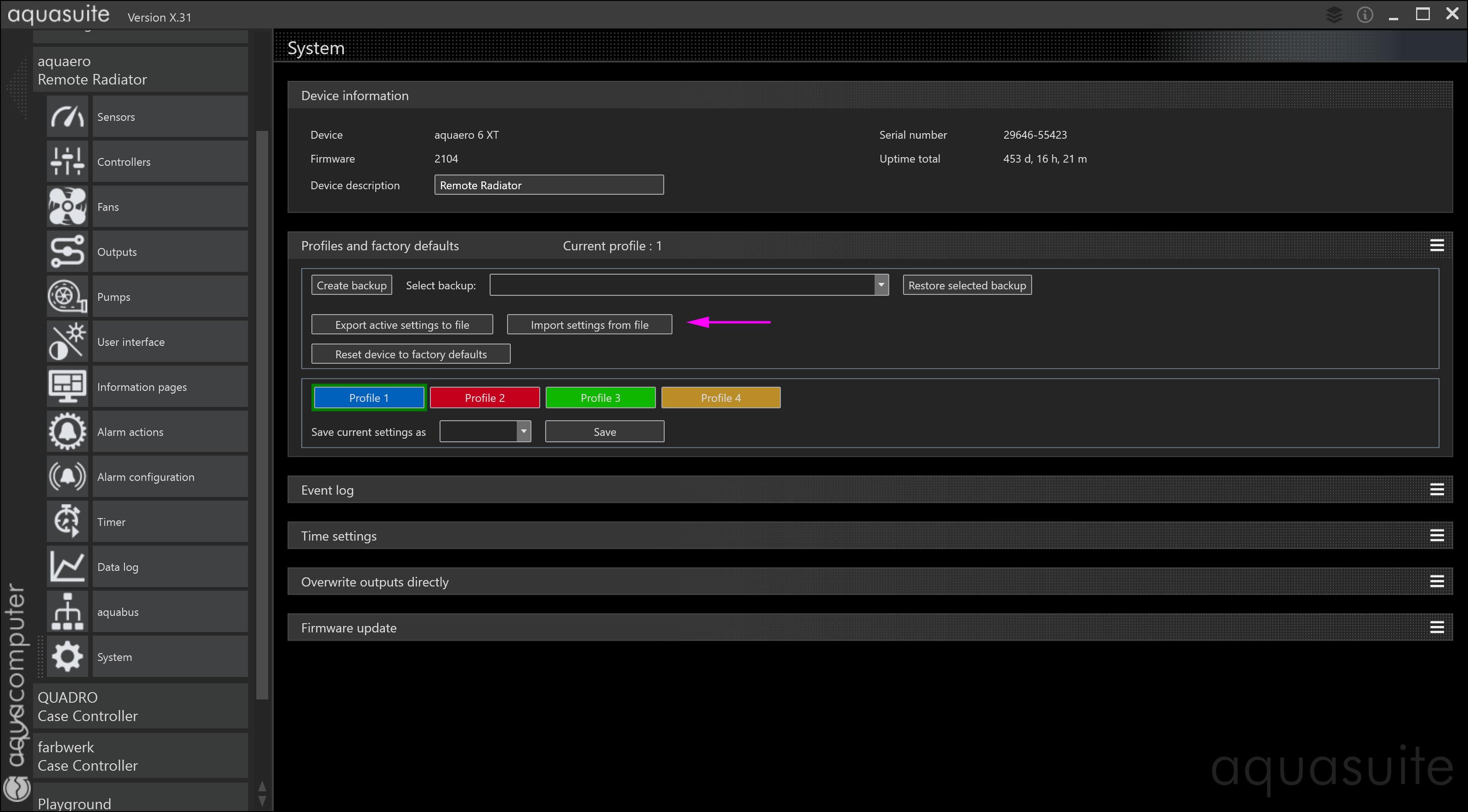 Not sure if dot.page files get saved with a profile save, but have you checked if the aquasuite installer auto-saved your profile when installing X.31 update?