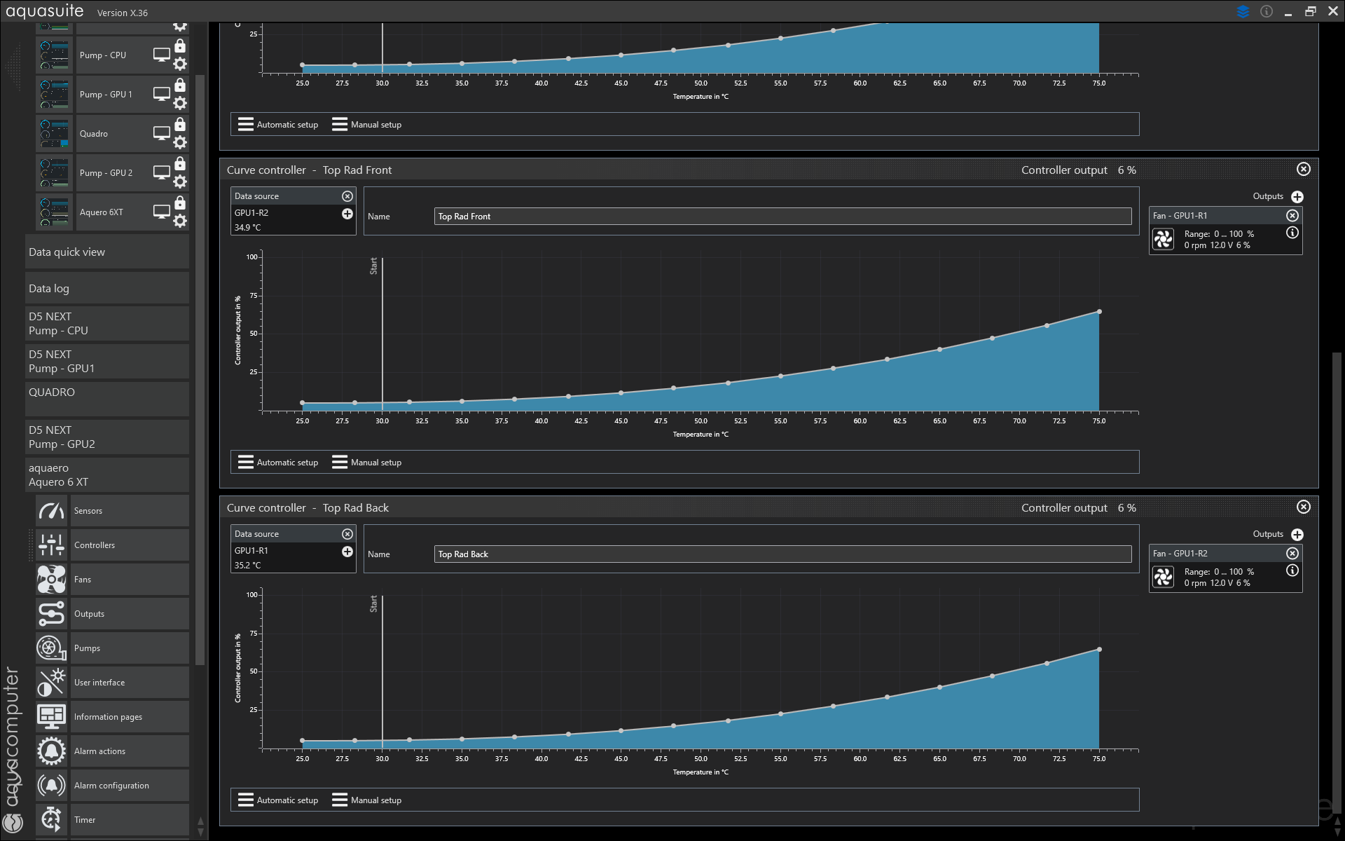 I'm also completely unsure how to set or tune the 3 D5 Pumps ... no idea what a sensible lower edge rpm speed should be, or how quickly I should boost flow as temperatures rise. Pumps seem very noisy when they crank to higher speeds...