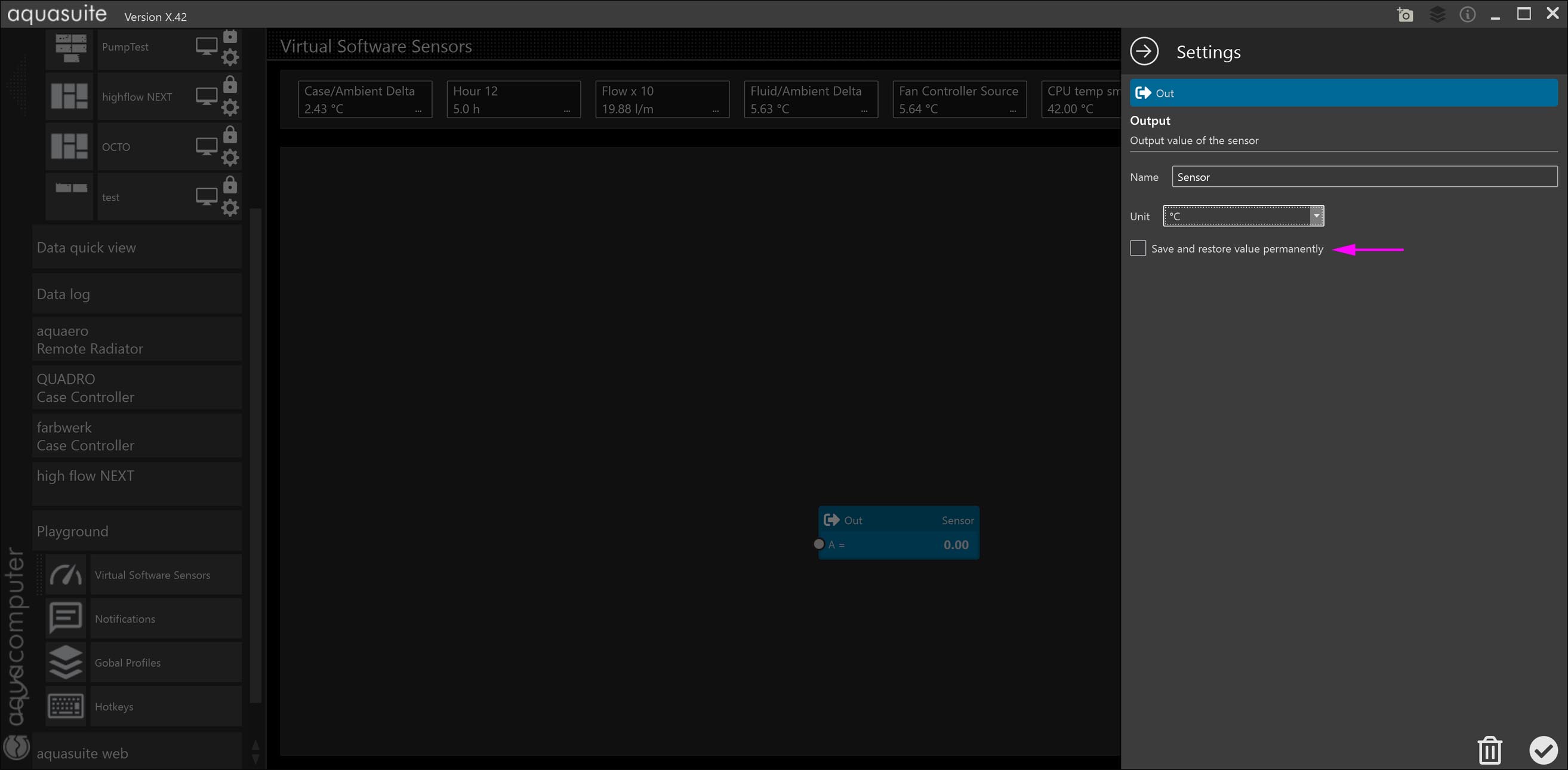 I have a Quadro and Aquasuite installed. I've put a couple addressable leds on the RGBpx and they change color according to temperature. But they use software sensors as a data source and the fallback setting doesn't appear to work during boot up. For about the first 10 to 15 seconds, the lights respond as though the temperature is much higher than the real temp and much higher than the fallback temp. Wasn't sure what it did, so I tried selecting "save and restore permanently" on the software sensors, but that didn't fix anything. I also tried setting a delay on the aquasuite startup, but same results. Am I missing something?
