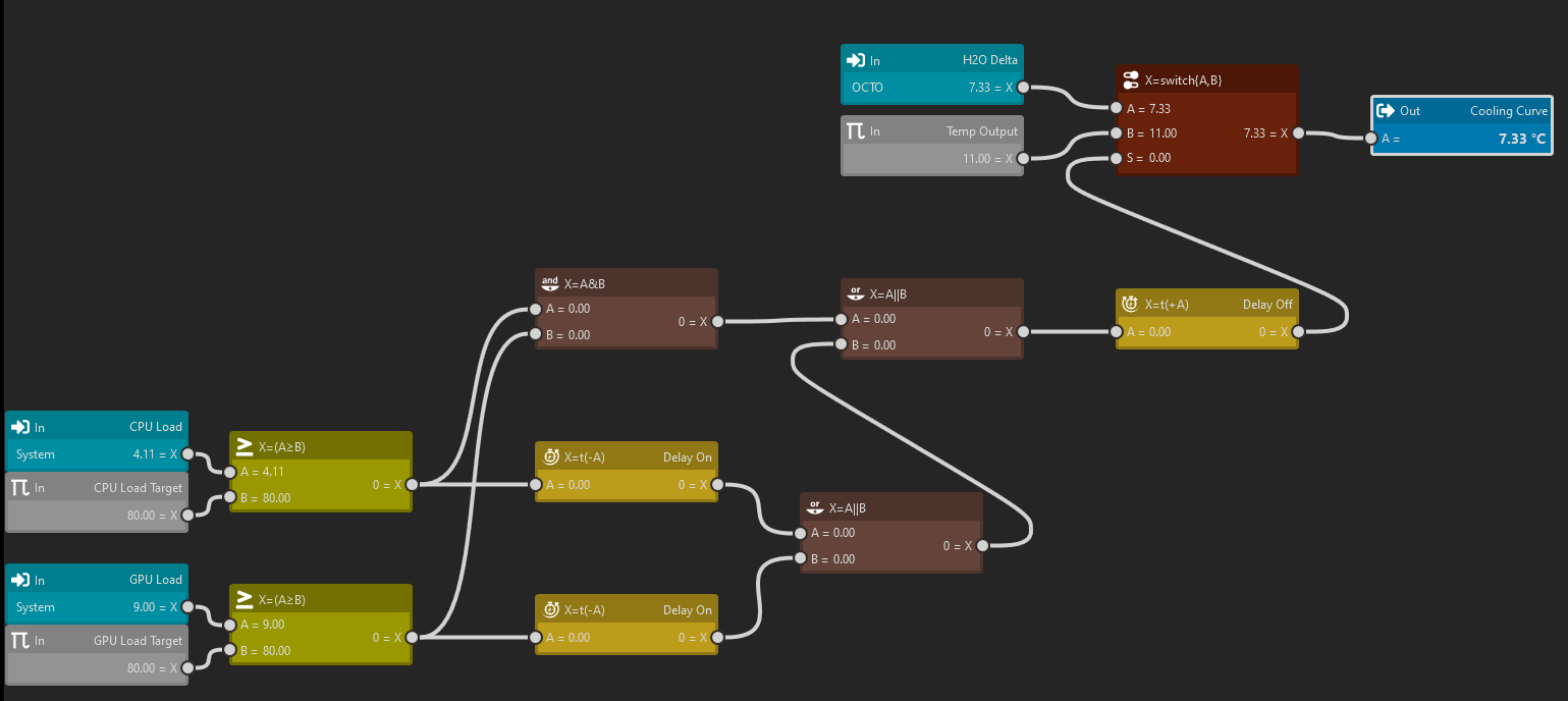 Again same as with my original I've used average loads to smooth out small fluctuations plus delays and combined with an alternative that if both CPU & GPU above a set threshold then the Water Pump is sent the max speed outut.