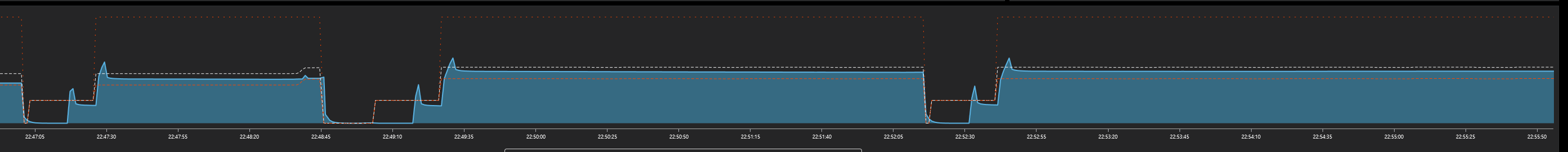 EDIT: note the change at 22:48:45 is my change of the pump from 40% to 50%, in an effort to drive up the set point and assess its impact on the behaviour of the pressure rise and fall on release/shield mode cycles.