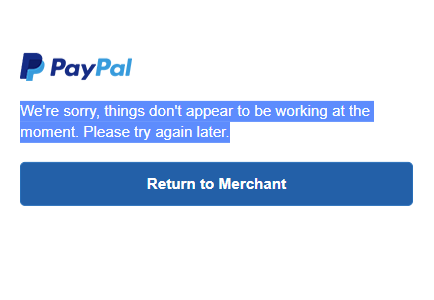 I want to buy a few things, Ultitube D5 with Leakshield and coolant. I encountered an error when using PayPal to checkout (msg from PayPal: We're sorry, things don't appear to be working at the moment. Please try again Later.)