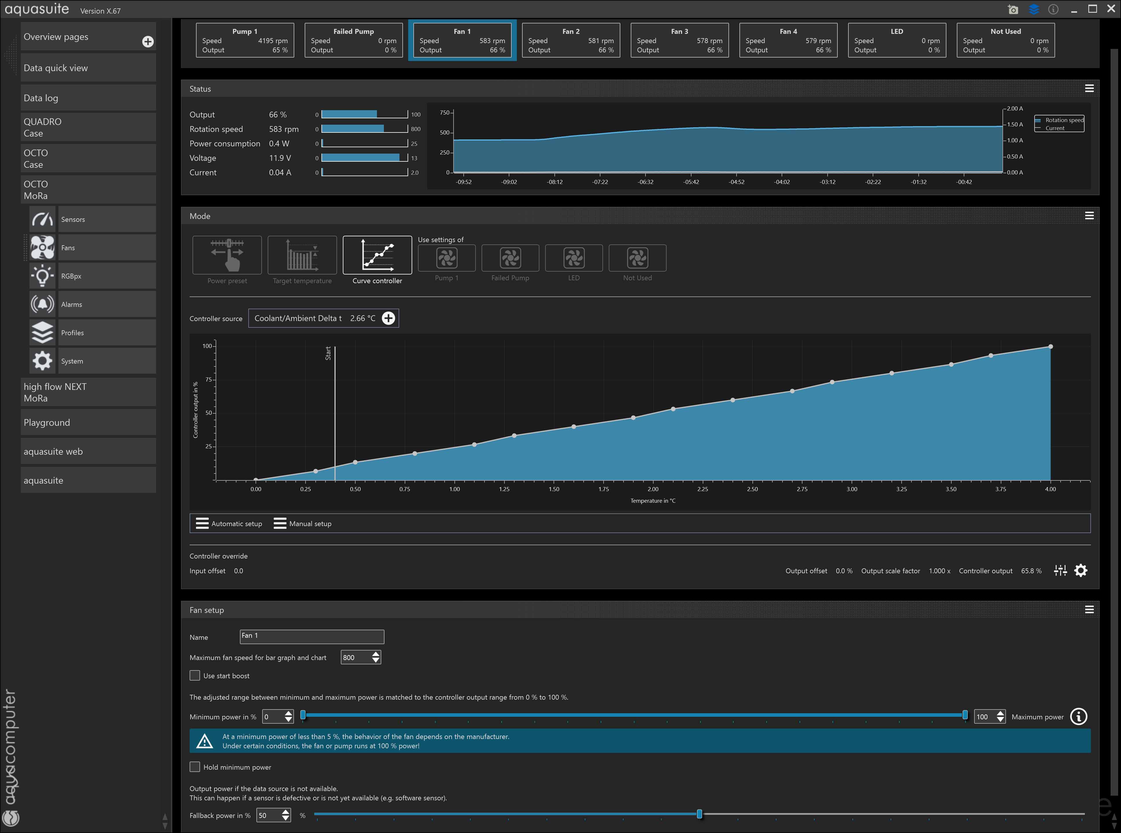 The fan Setting tab has the Fallback specified at 50%