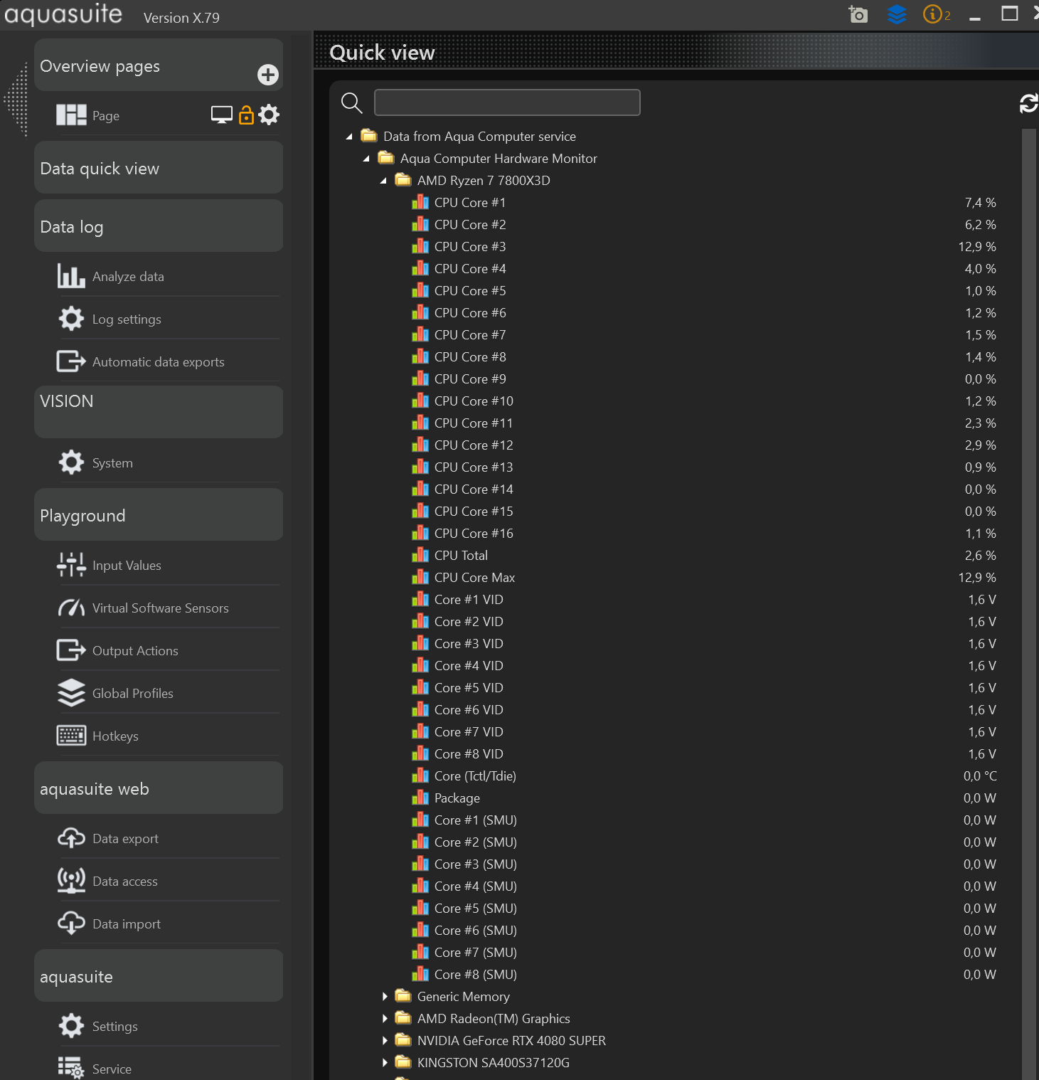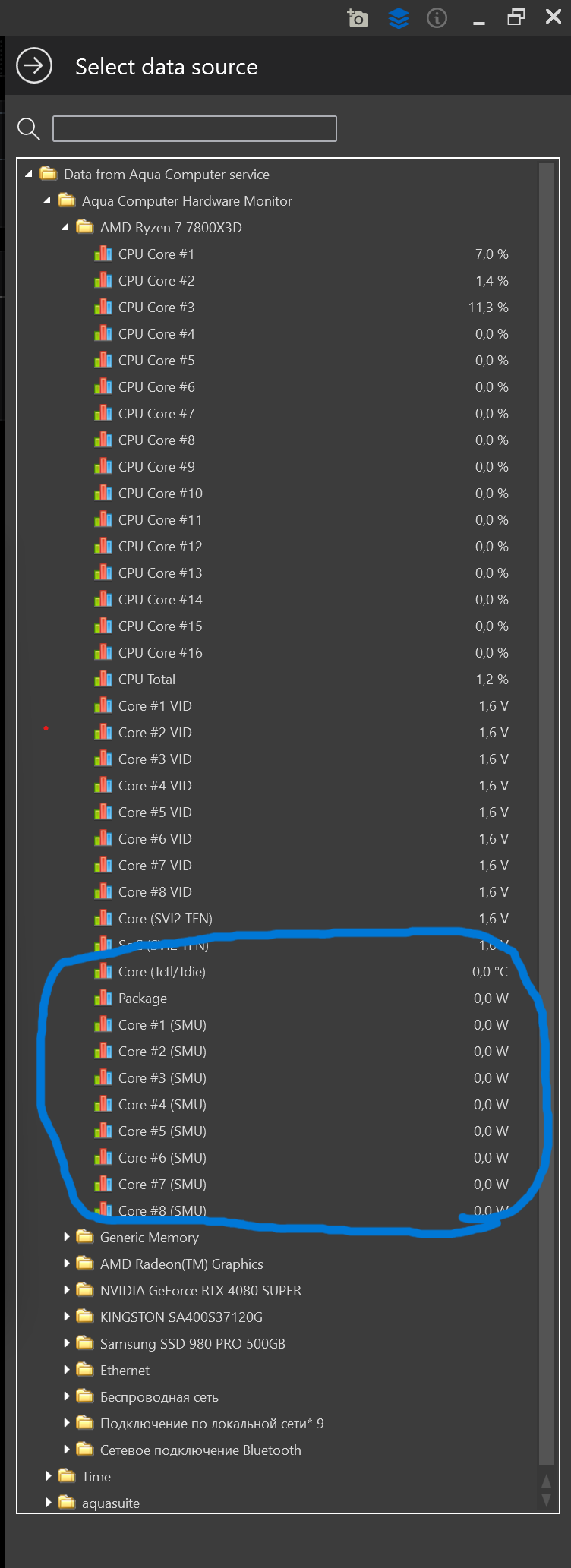 I am using aquacomputer cuplex kryos next with vision and I want the display to show the CPU temperature. But aquasuite does not display processor data. All others (motherboard, RAM, HDD) are displayed correctly. Why is this happening?