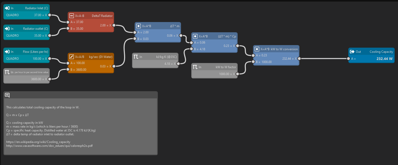 For DP ultra which is 20-35% glycol, the specific heat drops a bit, but you can still keep the same number if you like. those NTC sensors are not exactly precise, and are not calibrated so the whole calculation is more for shows, to get a rough idea of how many watts your rads take out.