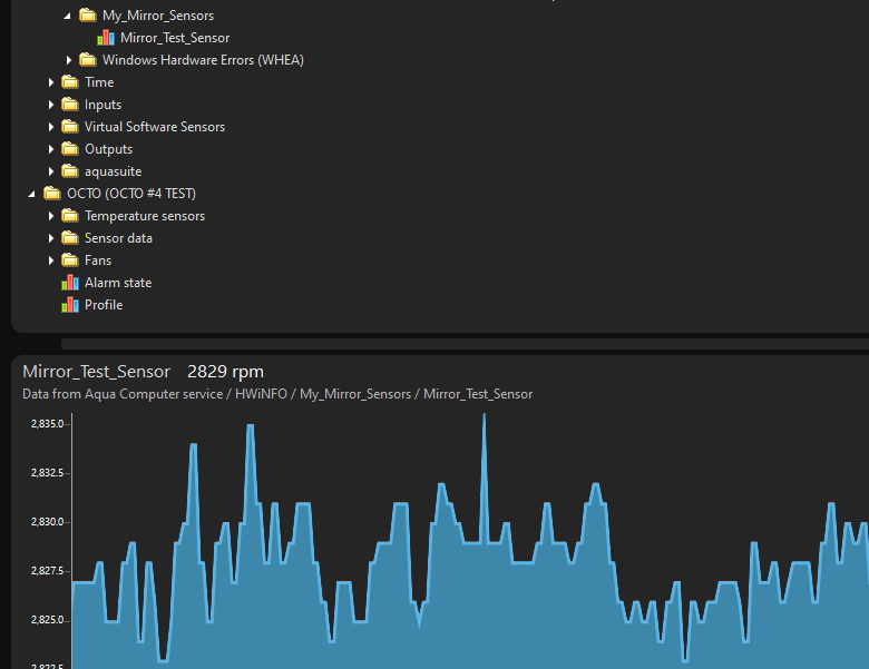 What OP may be able to do is manually add custom sensors to the Registry for the sensor items he wants to import into Aquasuite, then configure the custom sensors to be mirrors of the sensor values from the remote PC. Once the custom sensor is configured to mirror the imported sensor, it appears in the HWINFO main Sensor panel and appears in Aquasuite. I just tried making a custom sensor in the Registry that is a mirror of my pump RPM. It took me a while to figure out exactly how to set up the new Registry key but its working, and now I see that value in Aquasuite. The sensor value I am mirroring is not coming into HWINFO from another computer, but I don't think that matters for proof of concept. I do have another computer on the same network running HWINFO, so when I have time I can get HWINFO on that computer to send sensor data to HWINFO on this computer, then make a custom sensor that mirrors one of the imported sensors to confirm that the sensor mirror will work for an imported sensor value. I think HWINFO is limited to 64 custom sensors, and a Registry key would need to be manually entered for each one. That would be tedious to do for 64 sensors, but perhaps OP does not need that many remote sensors imported into Aquasuite.