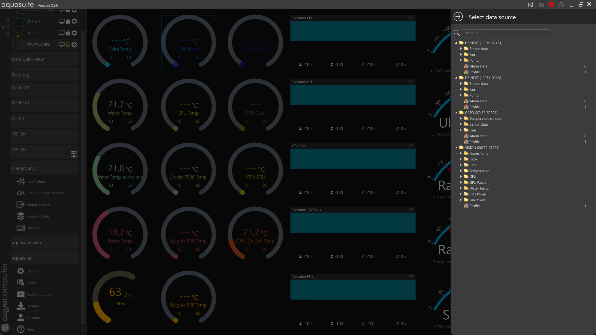 Thanks for the quick response... Yes, so I updated the bios and chipset recently, but the anomalous behavior occurred immediately after the aquasuite software update together with the firmware update of my 2x D5 Next. In the image in the previous post, all the sensors that I placed on that window were correctly read... on the input source, in addition to the aquacomputer devices, my motherboard and the Corsair psu also appeared. Now as you can see in the photo, only the aquacomputer devices appear and everything else has disappeared. Another strange thing is that I created a virtual sensor calling it delta temp. which detects the temperature difference between the liquid detected by the d5 next and the ambient temperature detected by vision, the difference in these temperatures generates the curves for all my fans on the octo and everything works fine, but the delta temperature is no longer shown, even if correctly detected and applied, which obviously didn't happen before. I'll post a photo for more details... regarding winring0, yes I already knew about the issue, many software are migrating towards pawnio, even if it is still not very stable and in fact I also installed the latest version of it, 2.1 I think. However, I don't have any active antivirus installed and Windows Defender is completely deactivated... HWinfo works as well as before, except that I have the free version since I only use it when I do some benchmarks or various tests.