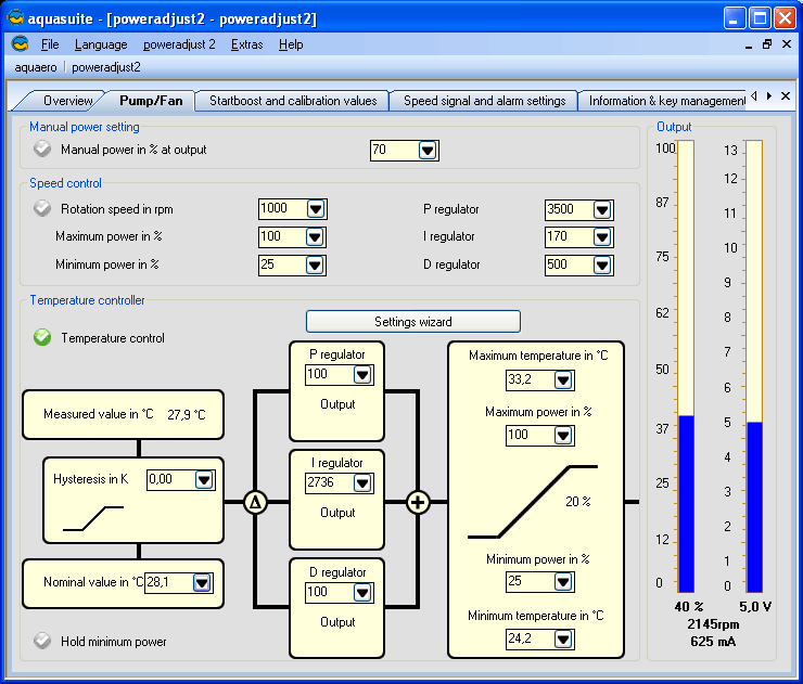 Instead of using manual control settings the ultra variant of the poweradjust 2 also offers a temperature-dependent control. It is designed very similar to the fan controller of the aquastream XT and allows a very detailed control over the power output. If you don't need that feature you can grab the standard variant of the poweradjust 2 which offers all functions of the ultra variant with the exception of the temperature-dependent control.