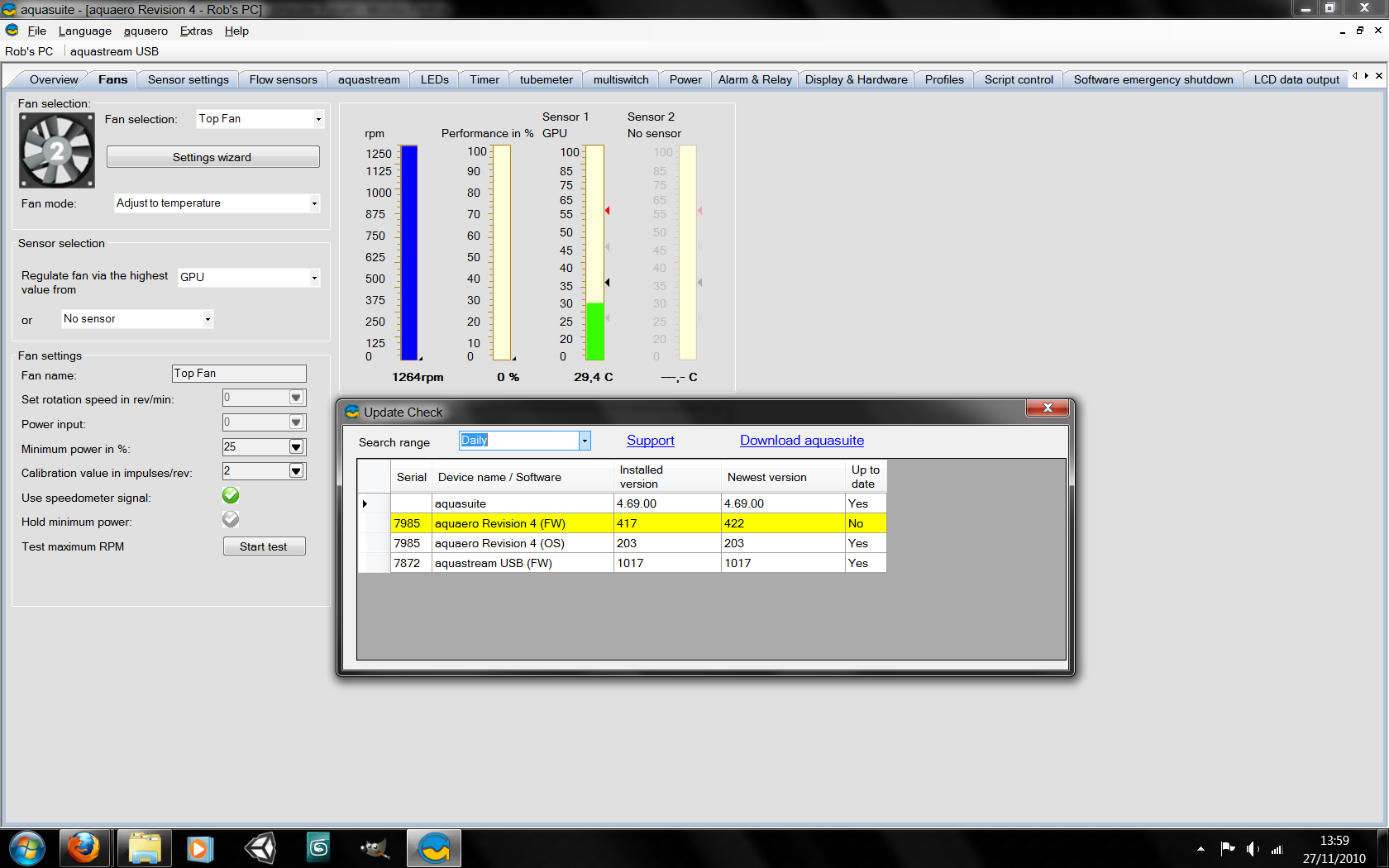 aquaero Revision 4 (FW) 417 needs updating