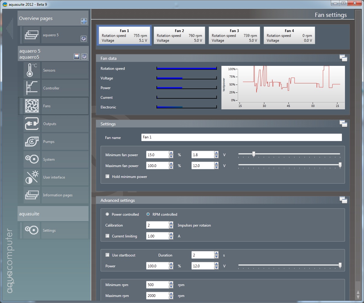 Now that the aquasuite is reading the data I can't seem to control the fans.
