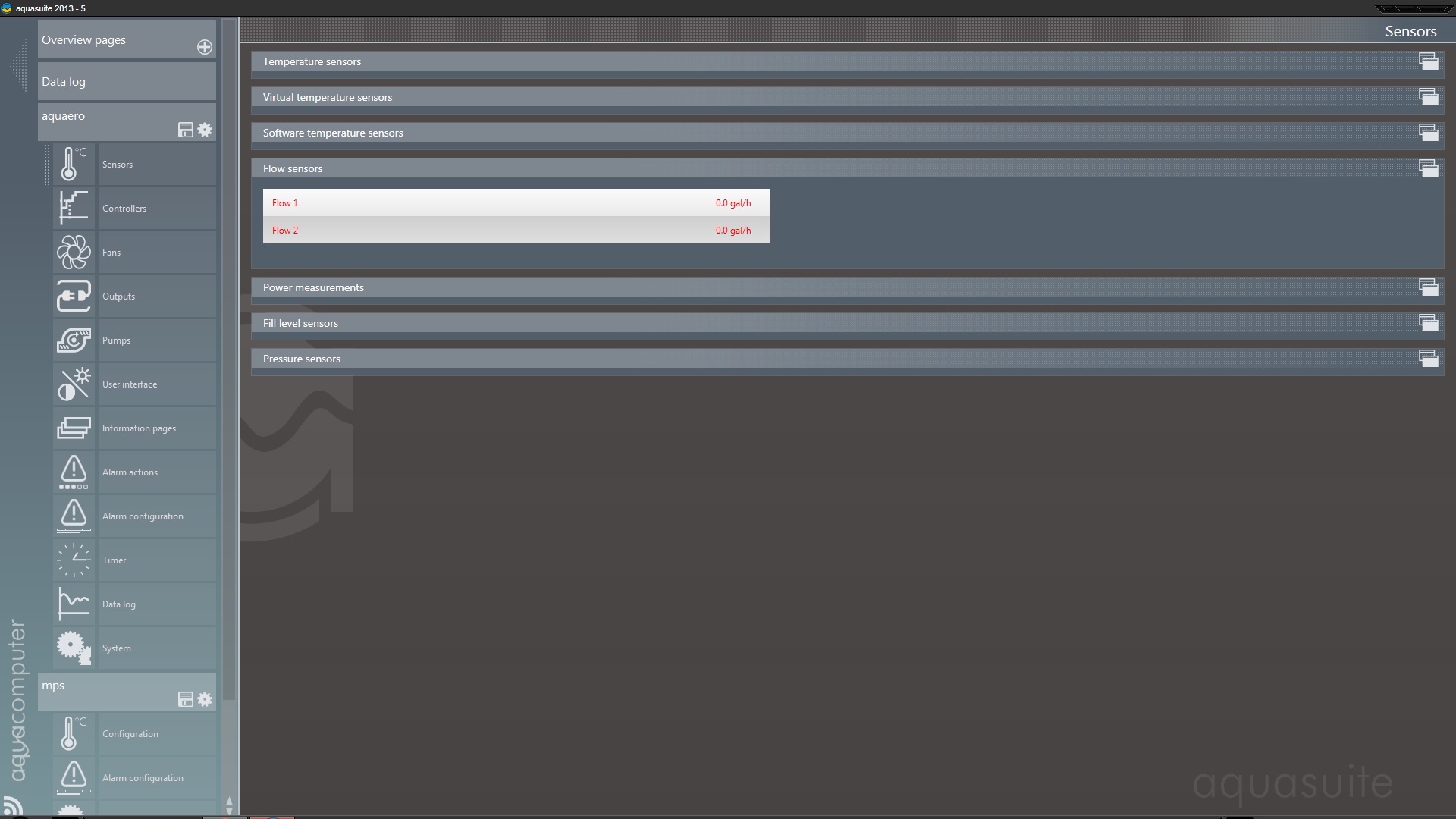 I do not see flow 11 or 14 just flow 1&2 aquasuite 2013-5 keeps crashing on me done it twice 2 me just taken screen shots.everytime i click mps will crash.When your MPS Device is connected via aqaubus with the aquaero you to add the flow sensor source from mps device to your sensor settings.