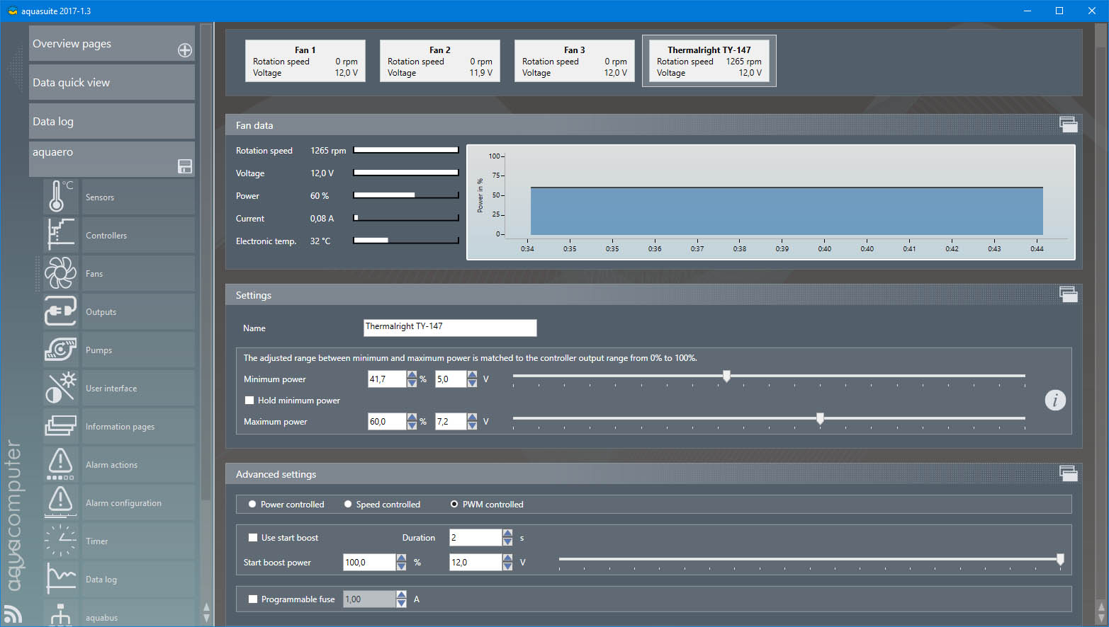 I connected my fan (Thermalright TY-147) to 4th aquaero fan connector and chose "PWM controled" setting on Fan page. But my fan is working on full speed and don't react on changing maximum power value, the RPM are always maximum. If I chose Power or Speed controlled fan is controlling perfect.